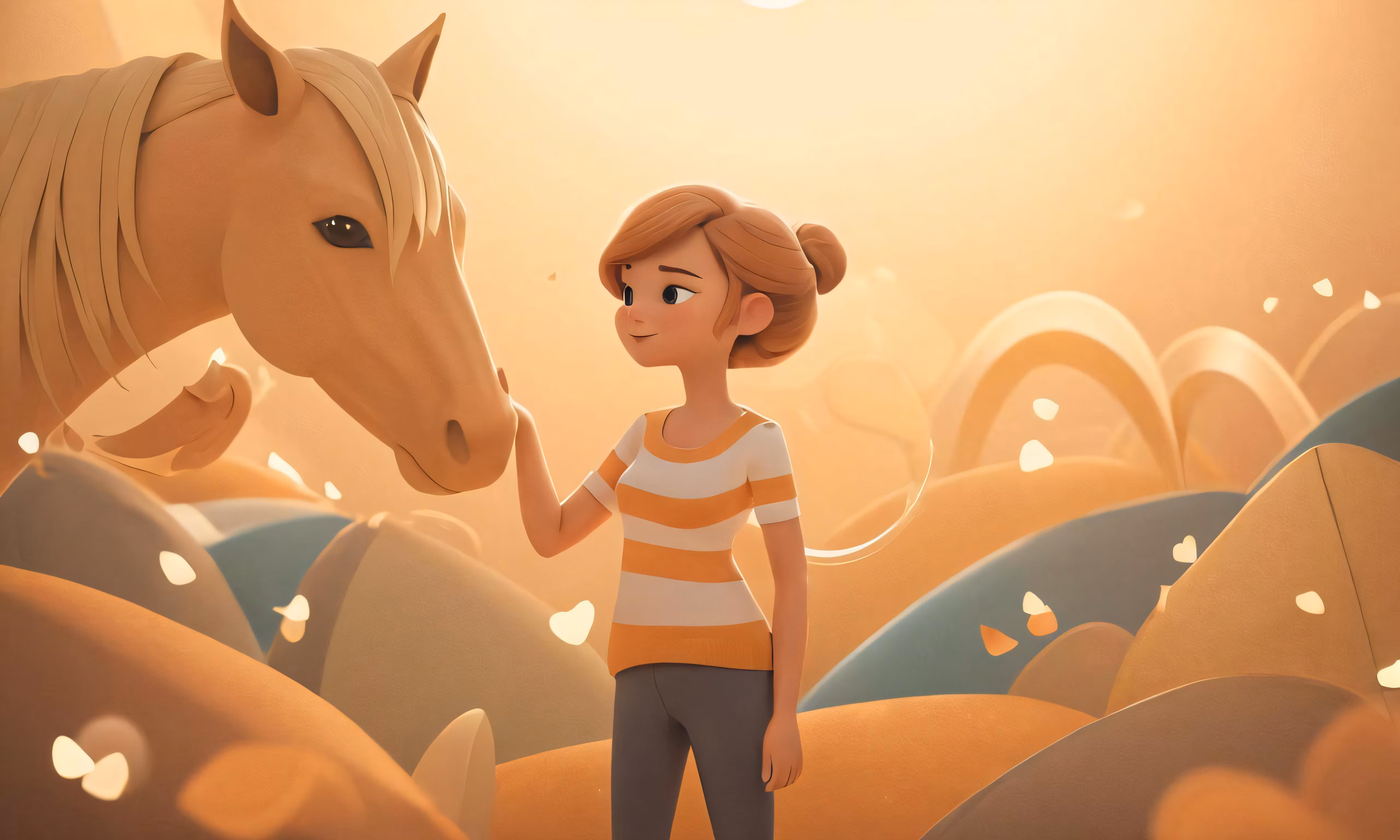 High resolution picture, free to use, a digital painting of a girl and a horse