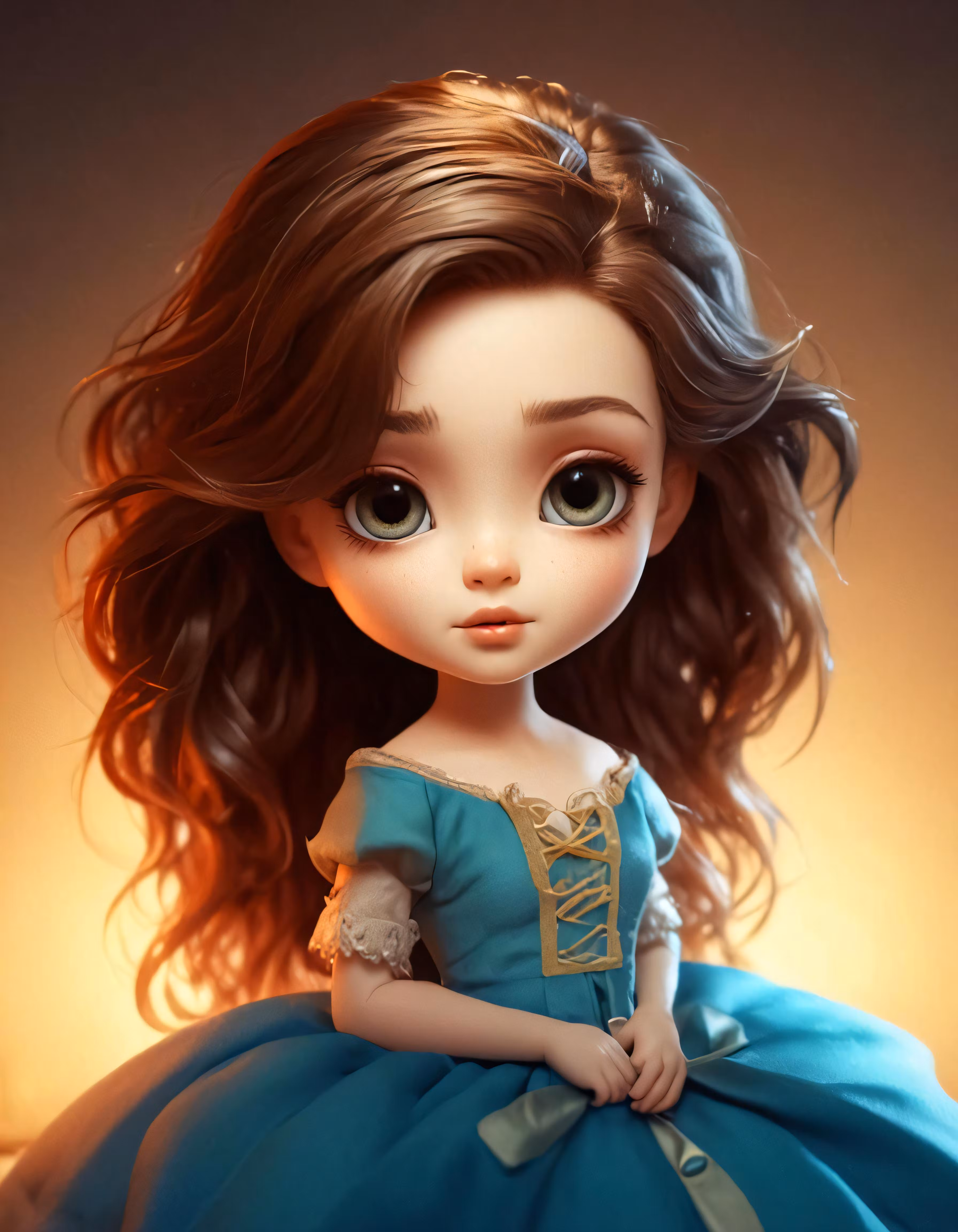 High resolution picture, free to use, a digital portrait of a little girl in a blue dress