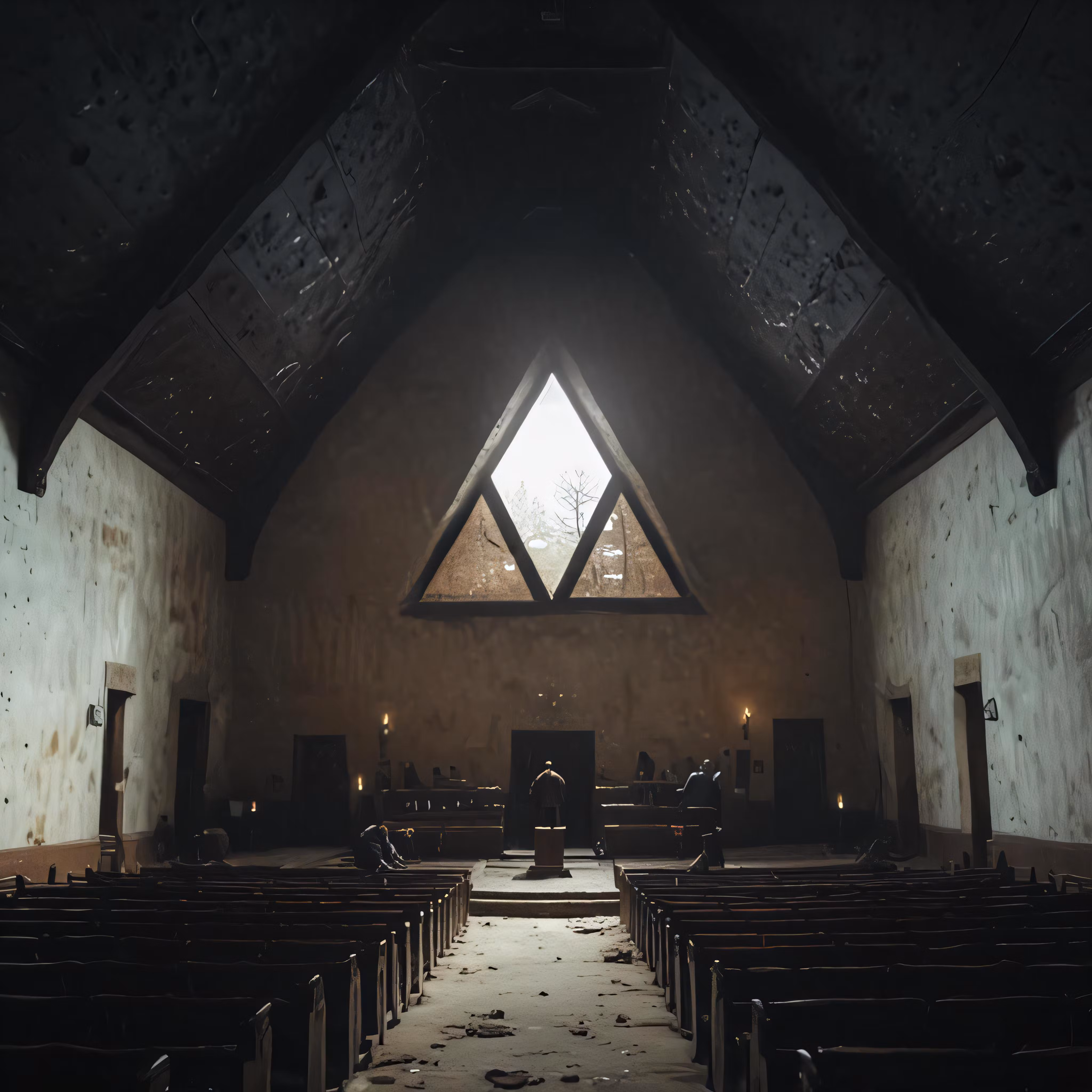 High resolution picture, free to use, a dimly lit church with benches and windows