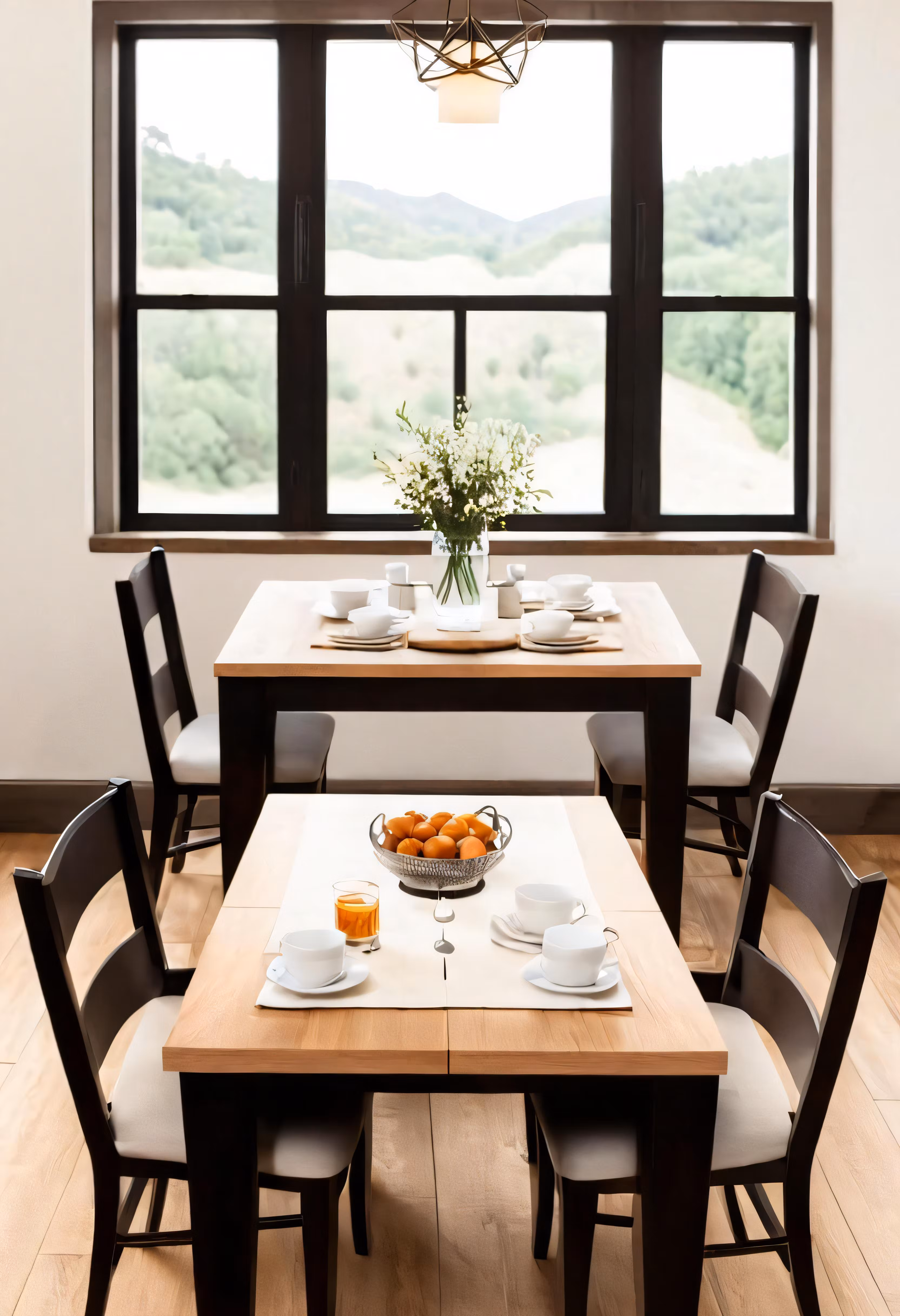 High resolution picture, free to use, a dining table is set with bowls of oranges