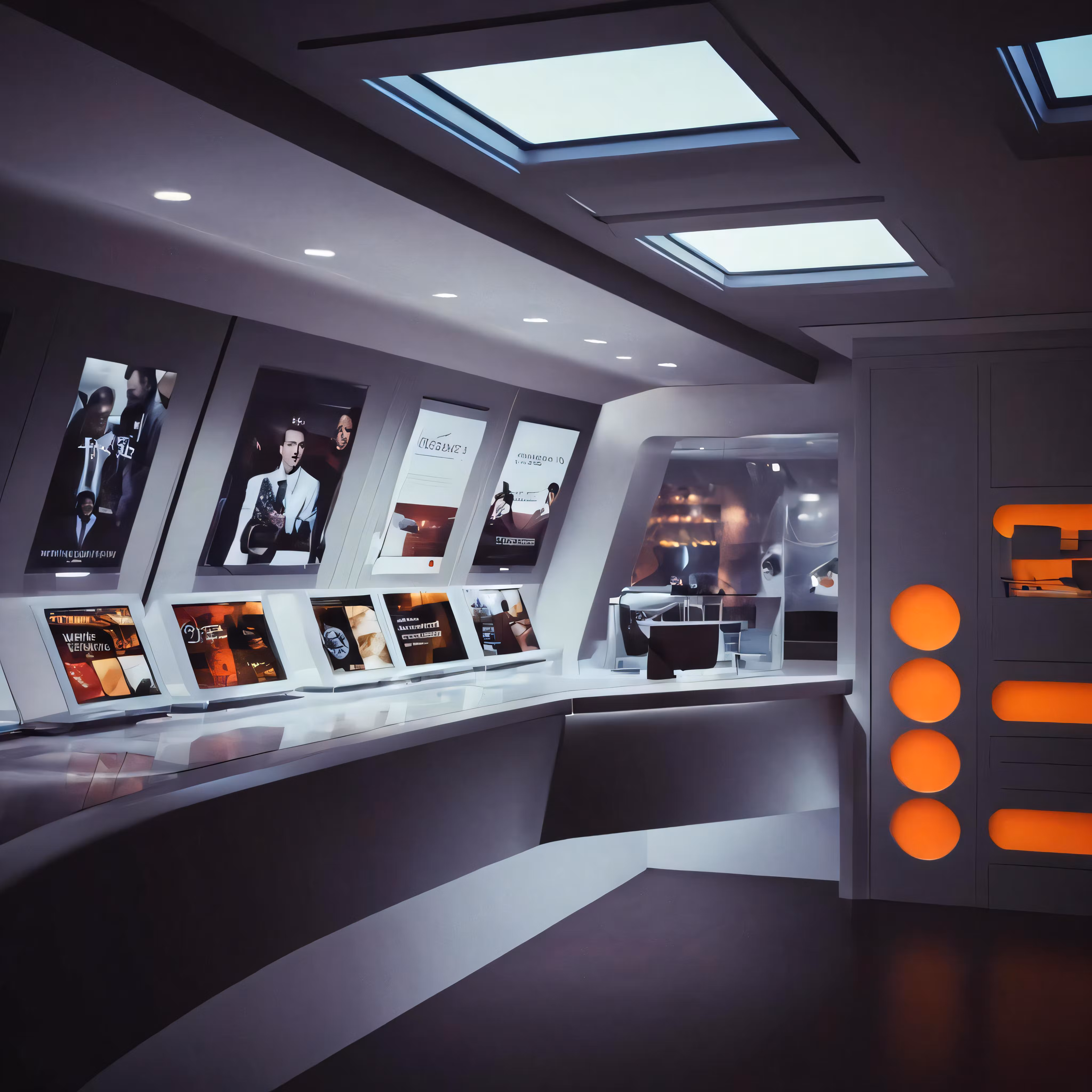 High resolution picture, free to use, a display of movie memorabilia in an office