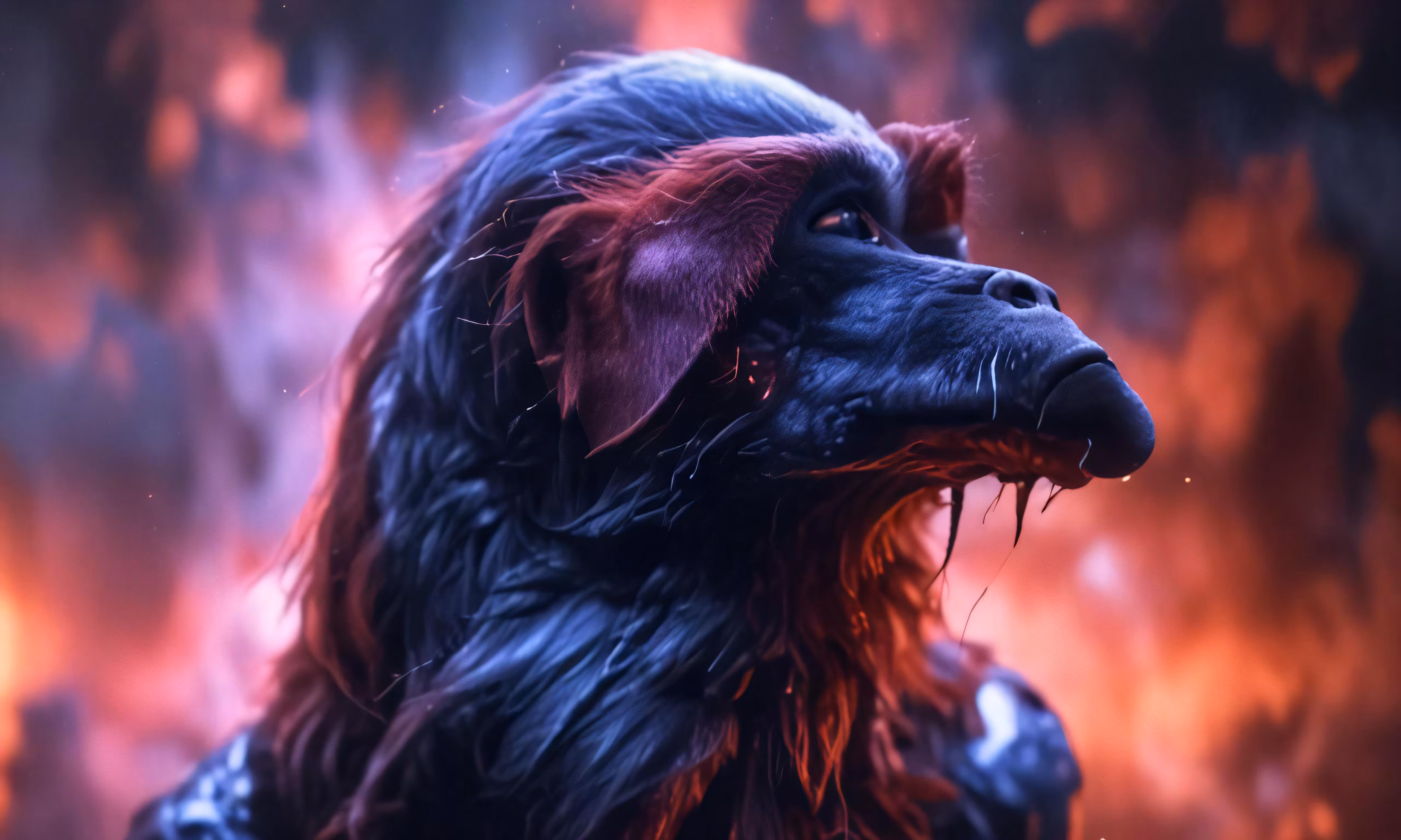 High resolution picture, free to use, a dog is on fire with its mouth open