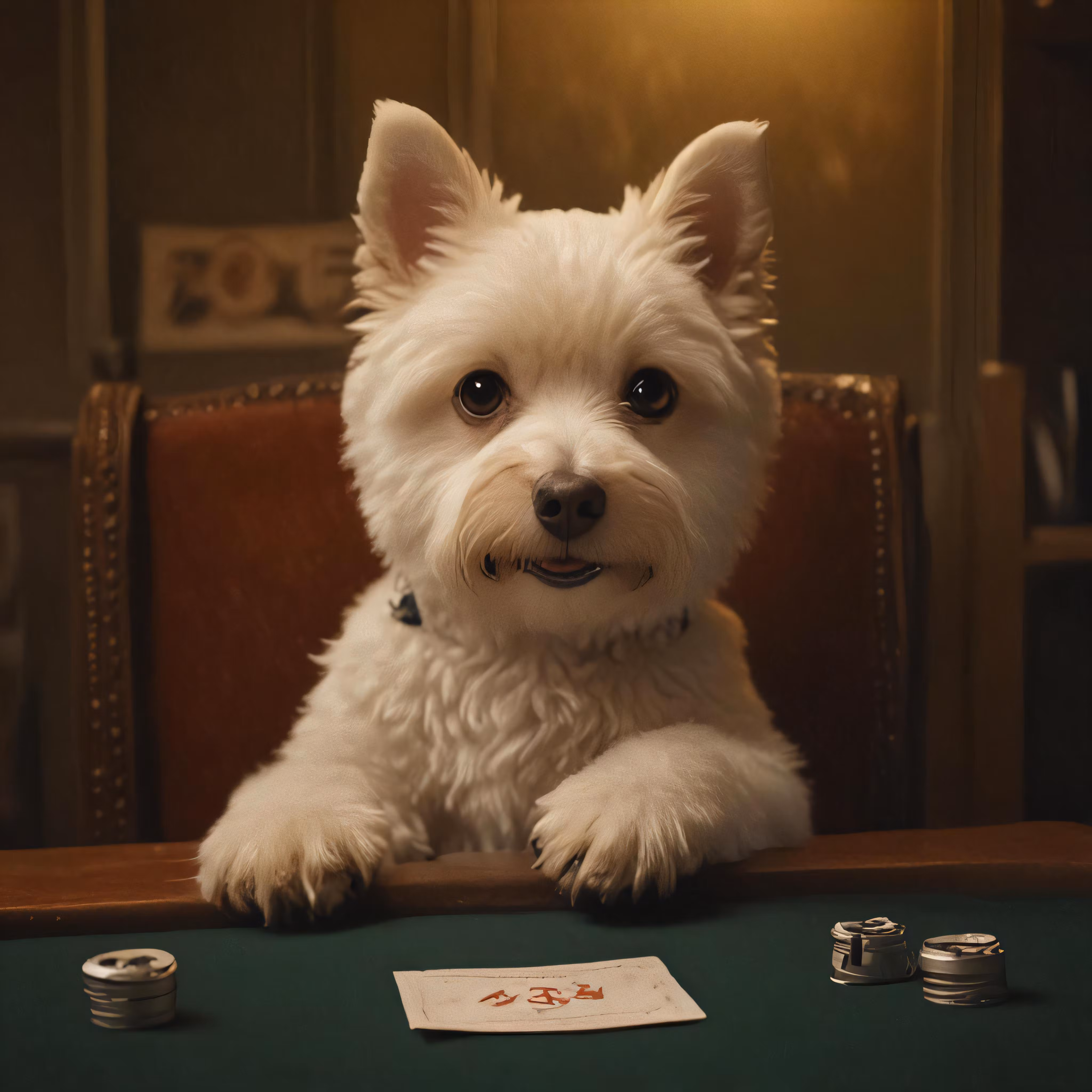 High resolution picture, free to use, a dog looking at the camera next to a green table