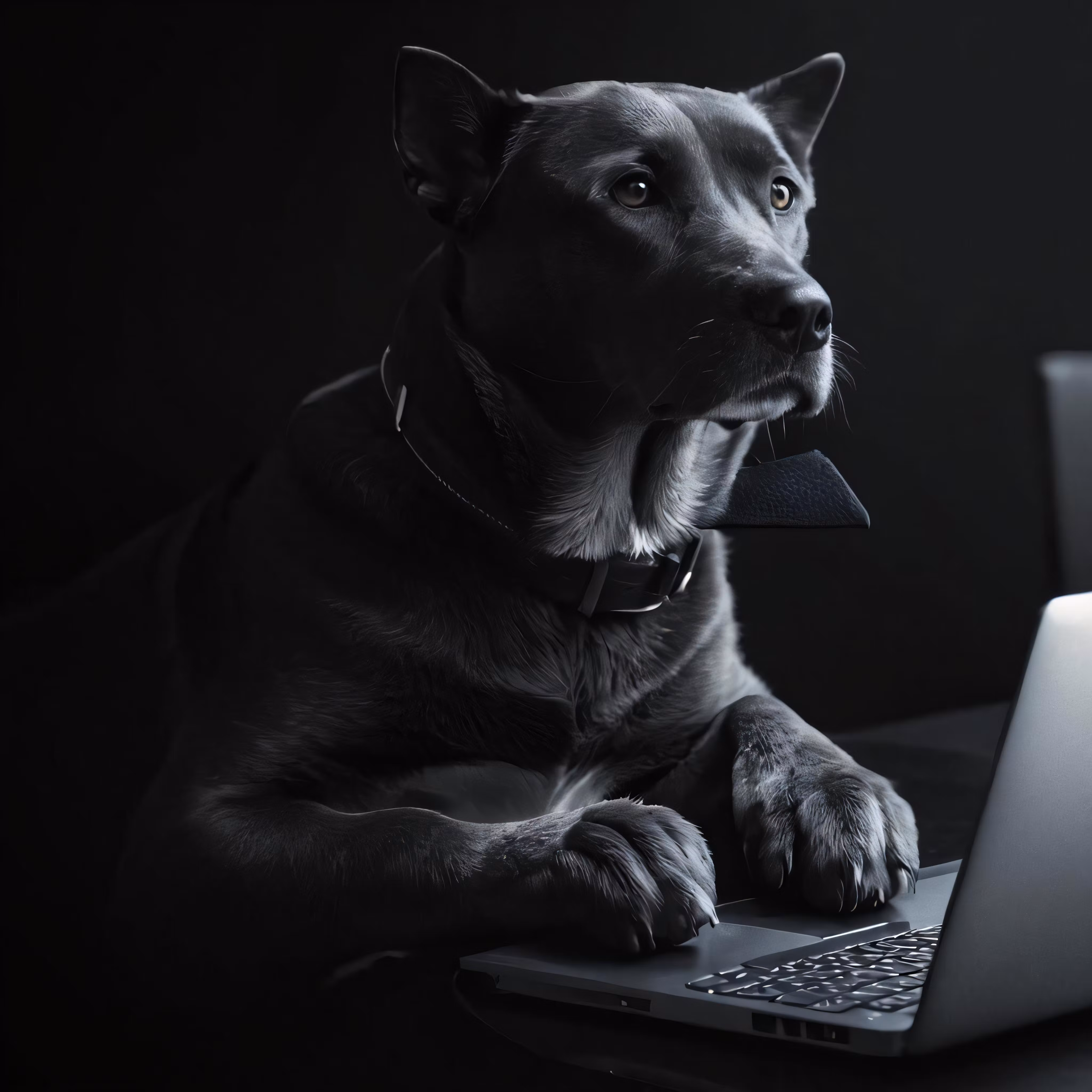 High resolution picture, free to use, a dog sitting on the keyboard of an open laptop