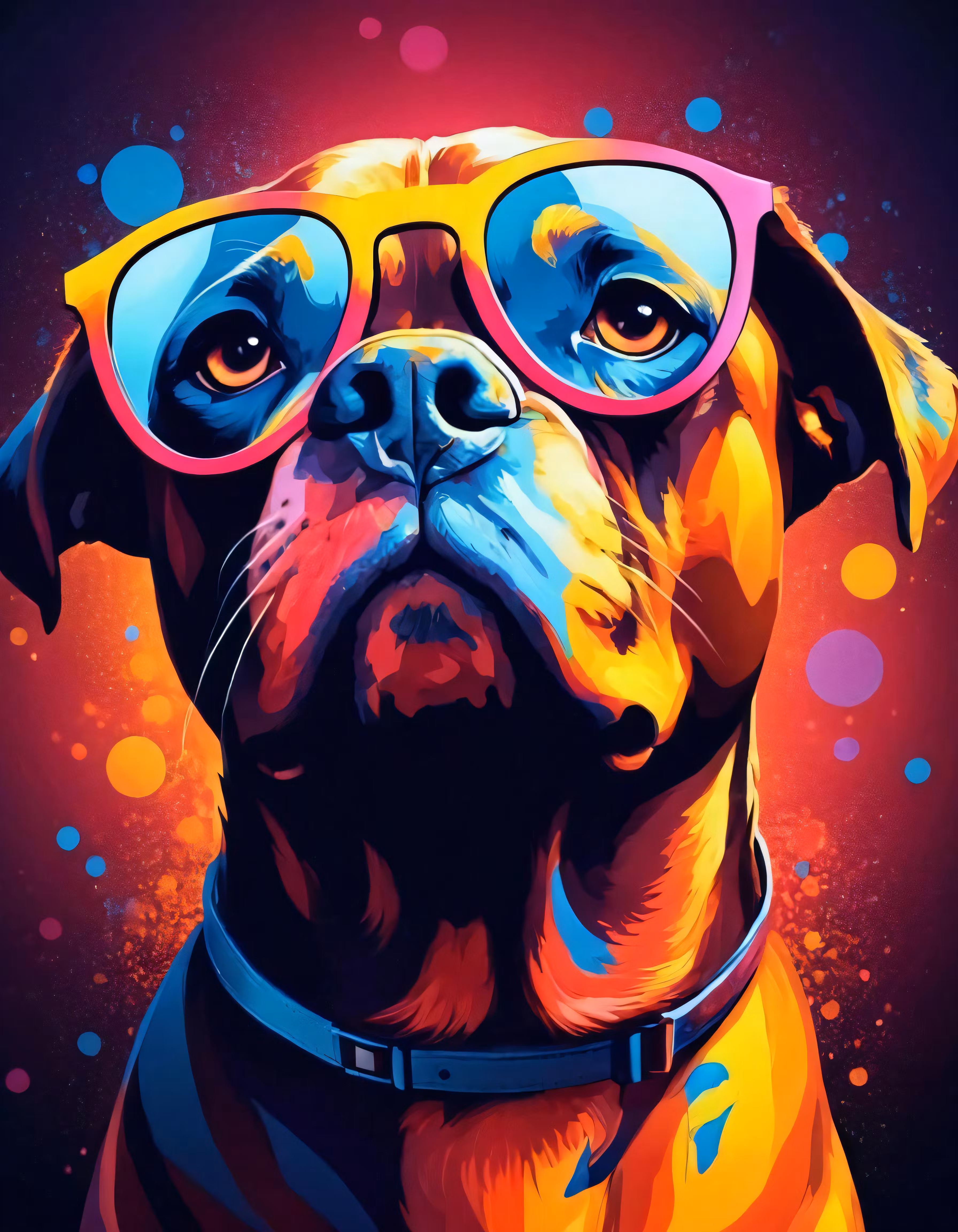 High resolution picture, free to use, a dog wearing glasses is featured on the side of the screen