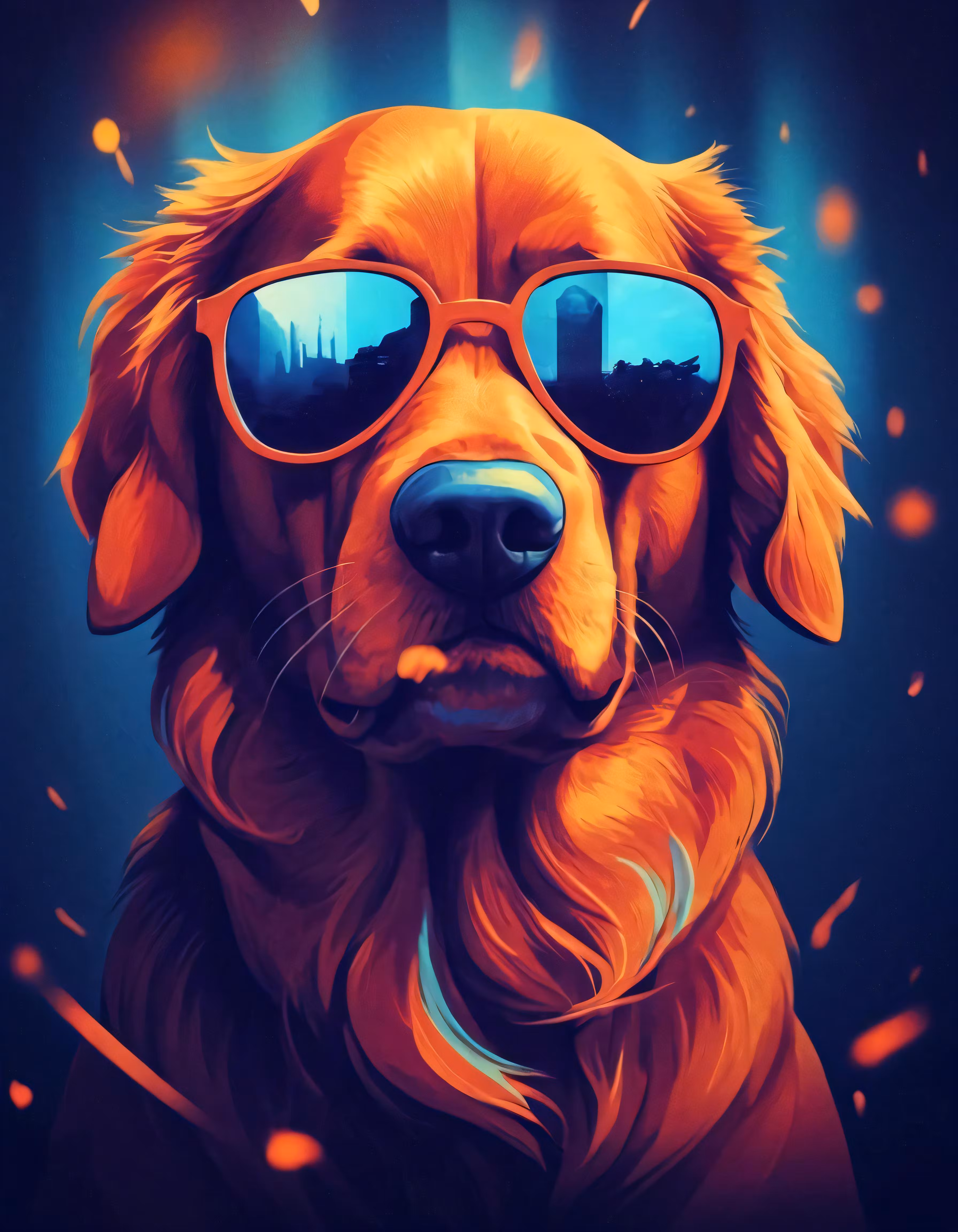 High resolution picture, free to use, a dog wearing shades is shown with stars