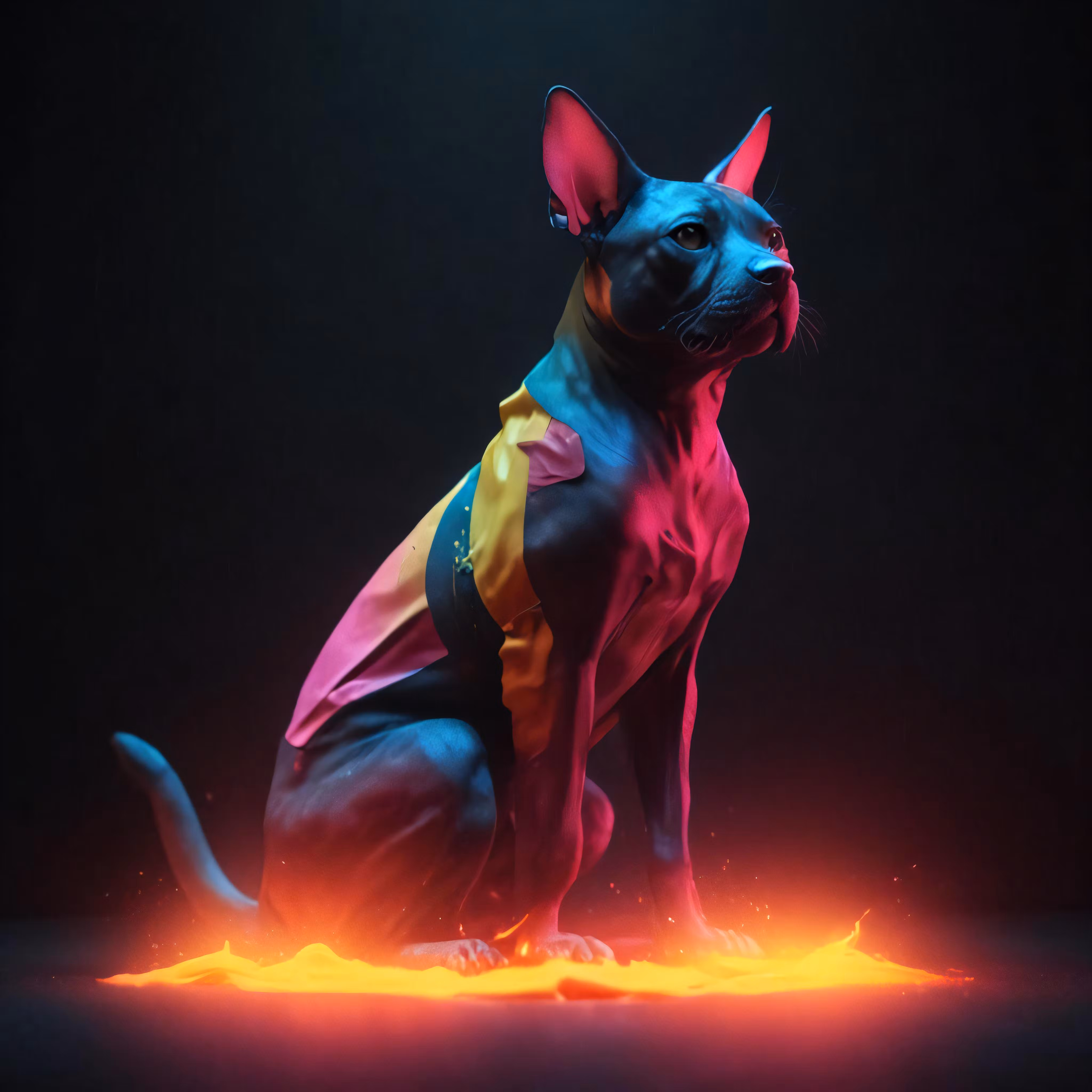 High resolution picture, free to use, a dog with bright colors sitting on a surface