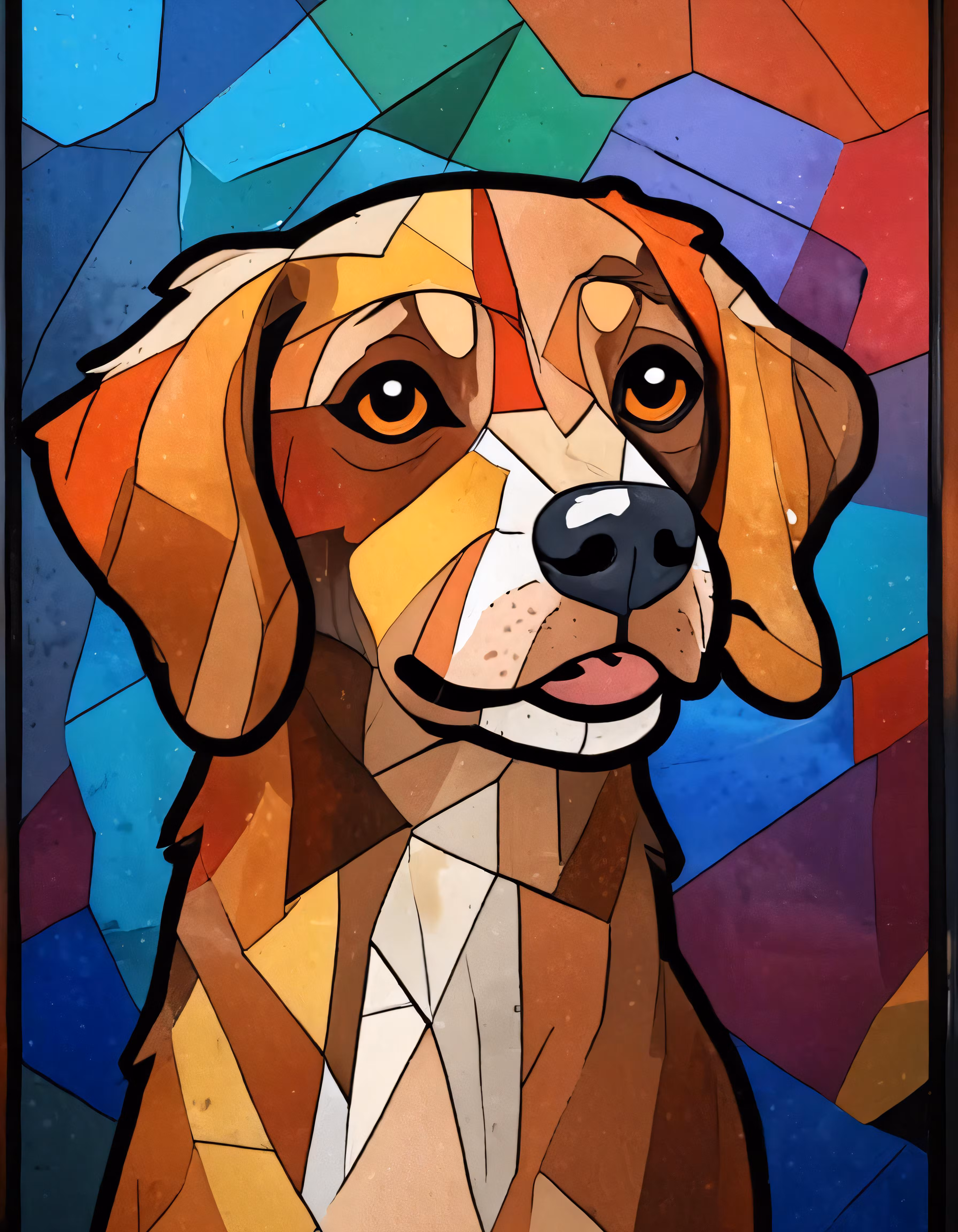 High resolution picture, free to use, a dog with geometric patterns in front of a blue background