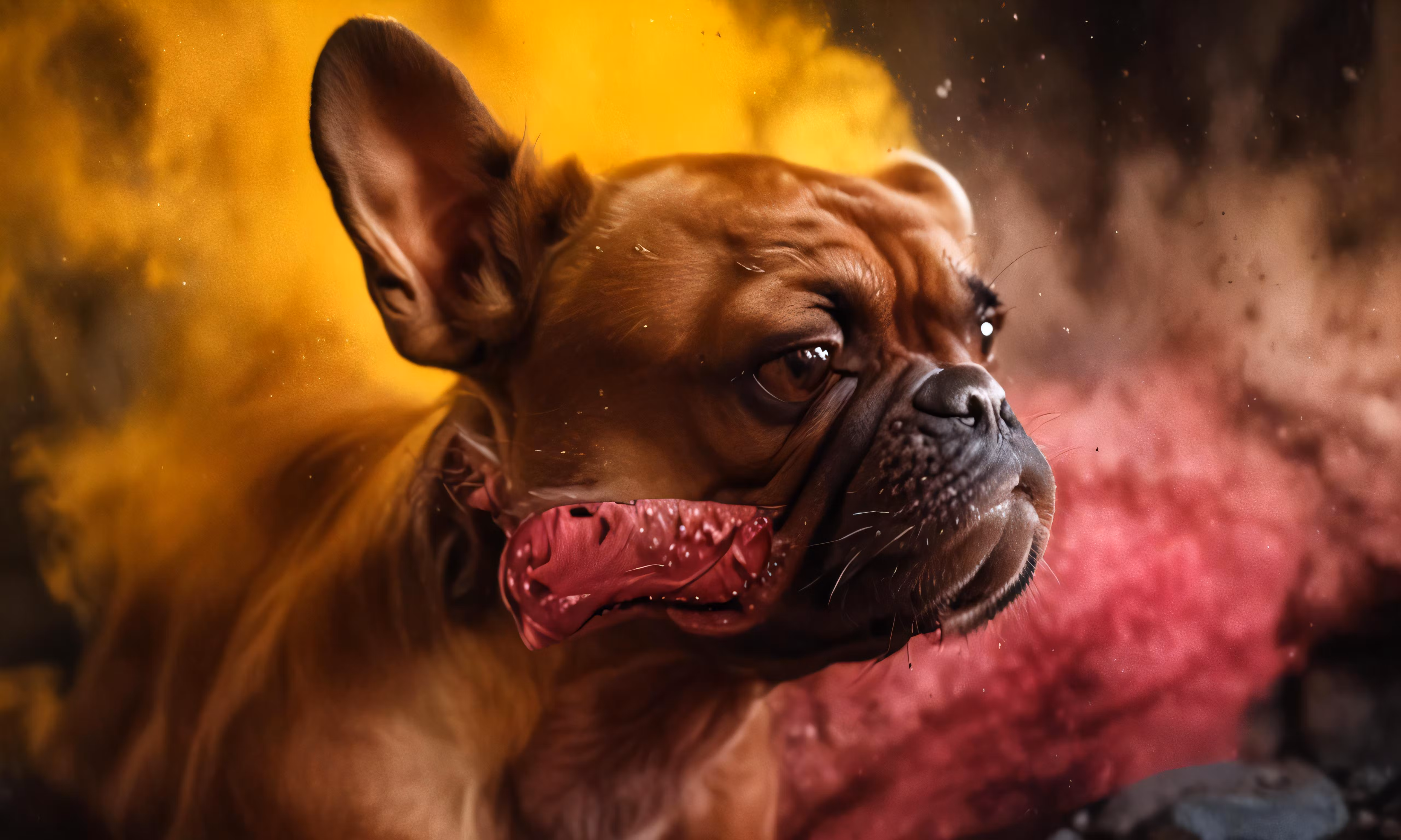 High resolution picture, free to use, a dog with its face partially covered by fire