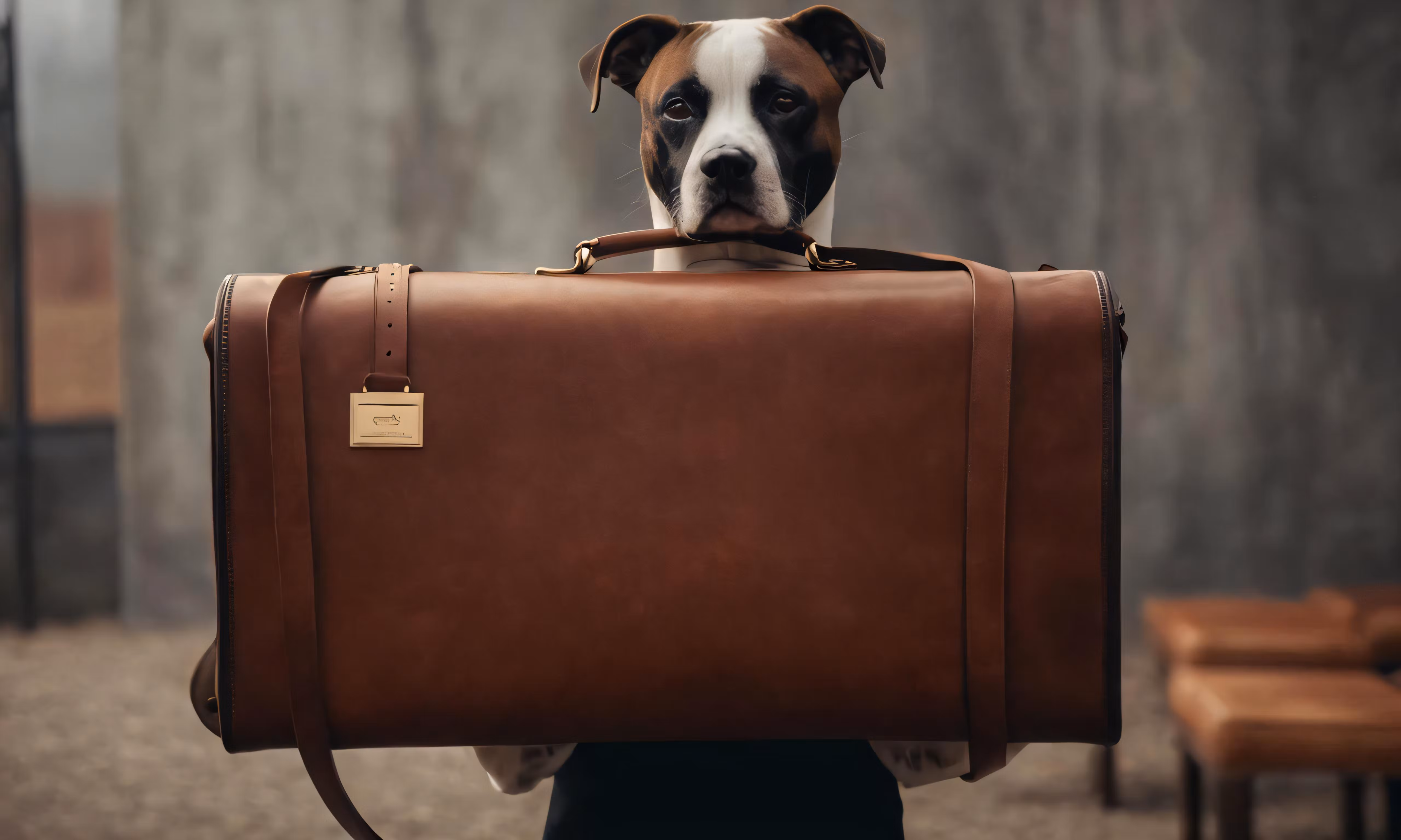High resolution picture, free to use, a dog with its head stuck in the luggage
