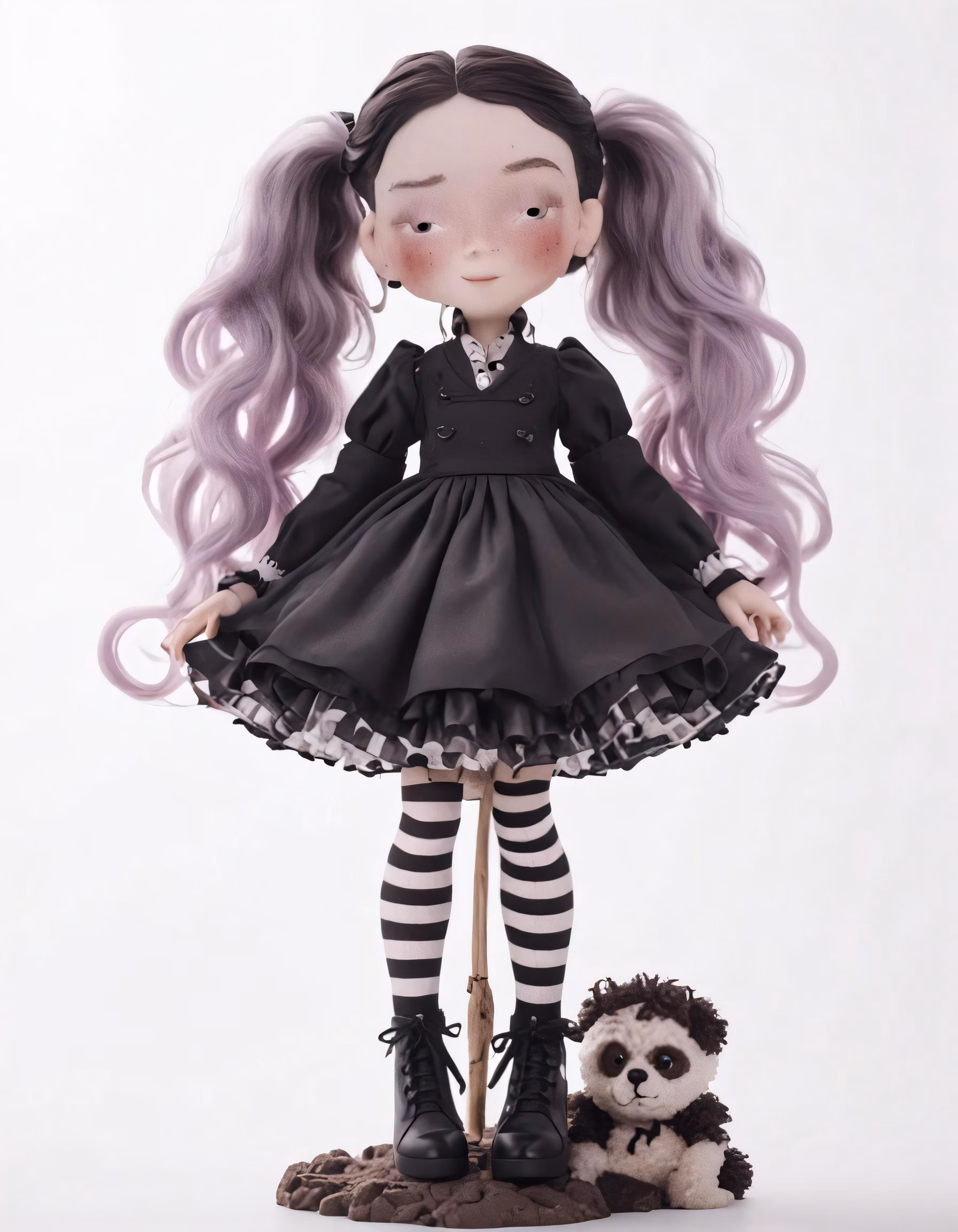 High resolution picture, free to use, a doll and her pet dog posed in front of white background