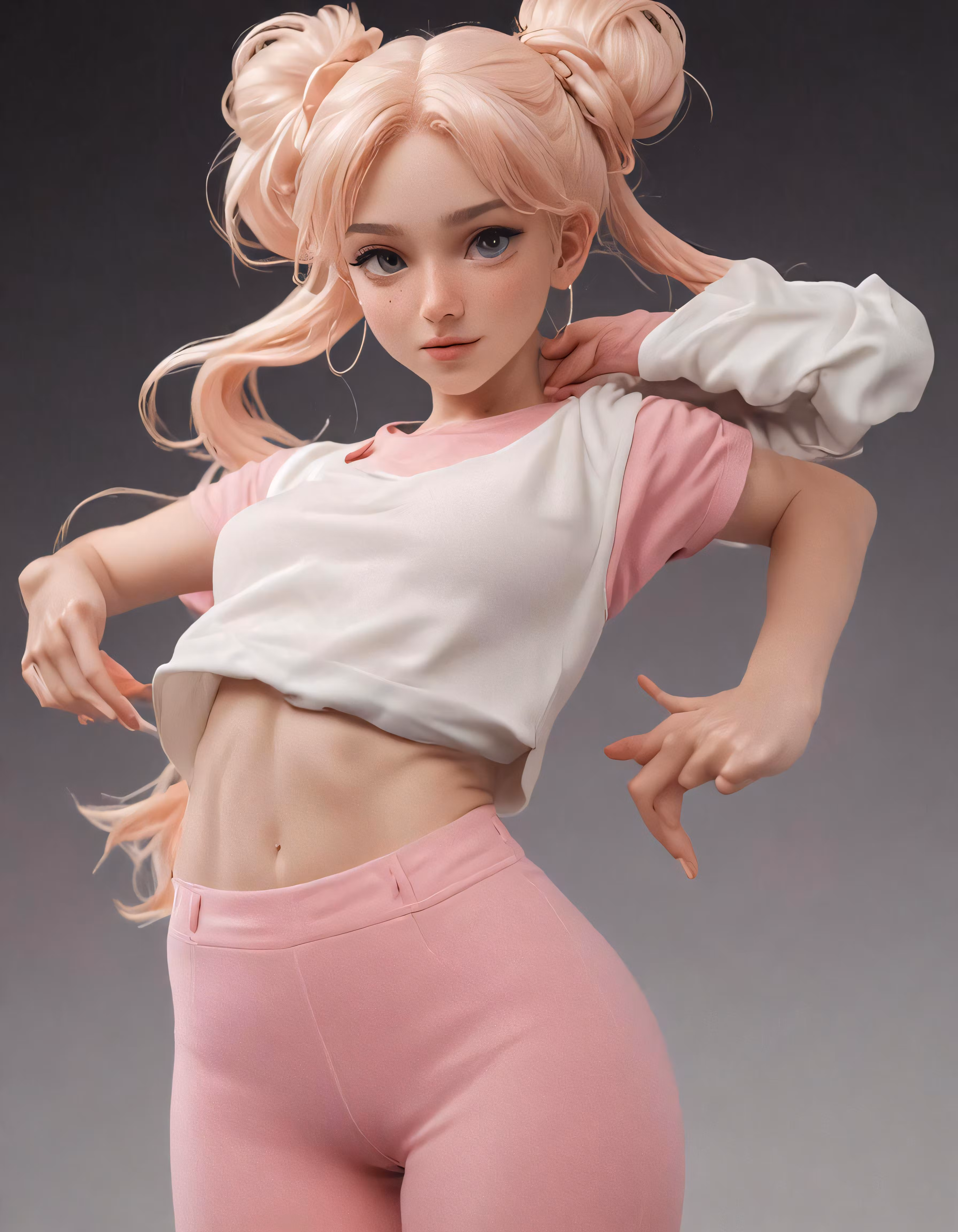 High resolution picture, free to use, a doll dressed in pink pants and top