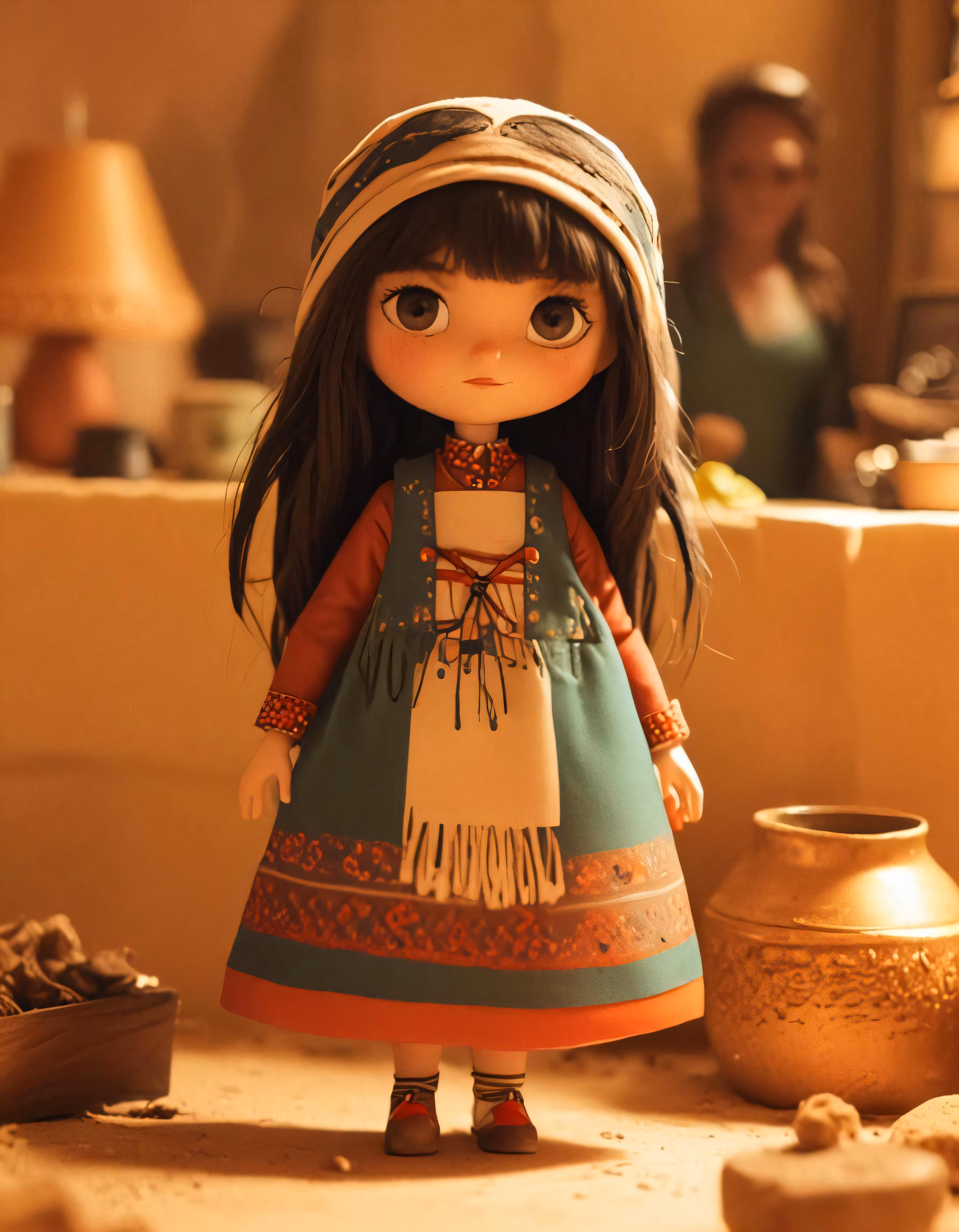High resolution picture, free to use, a doll in a mexican dress in a desert setting