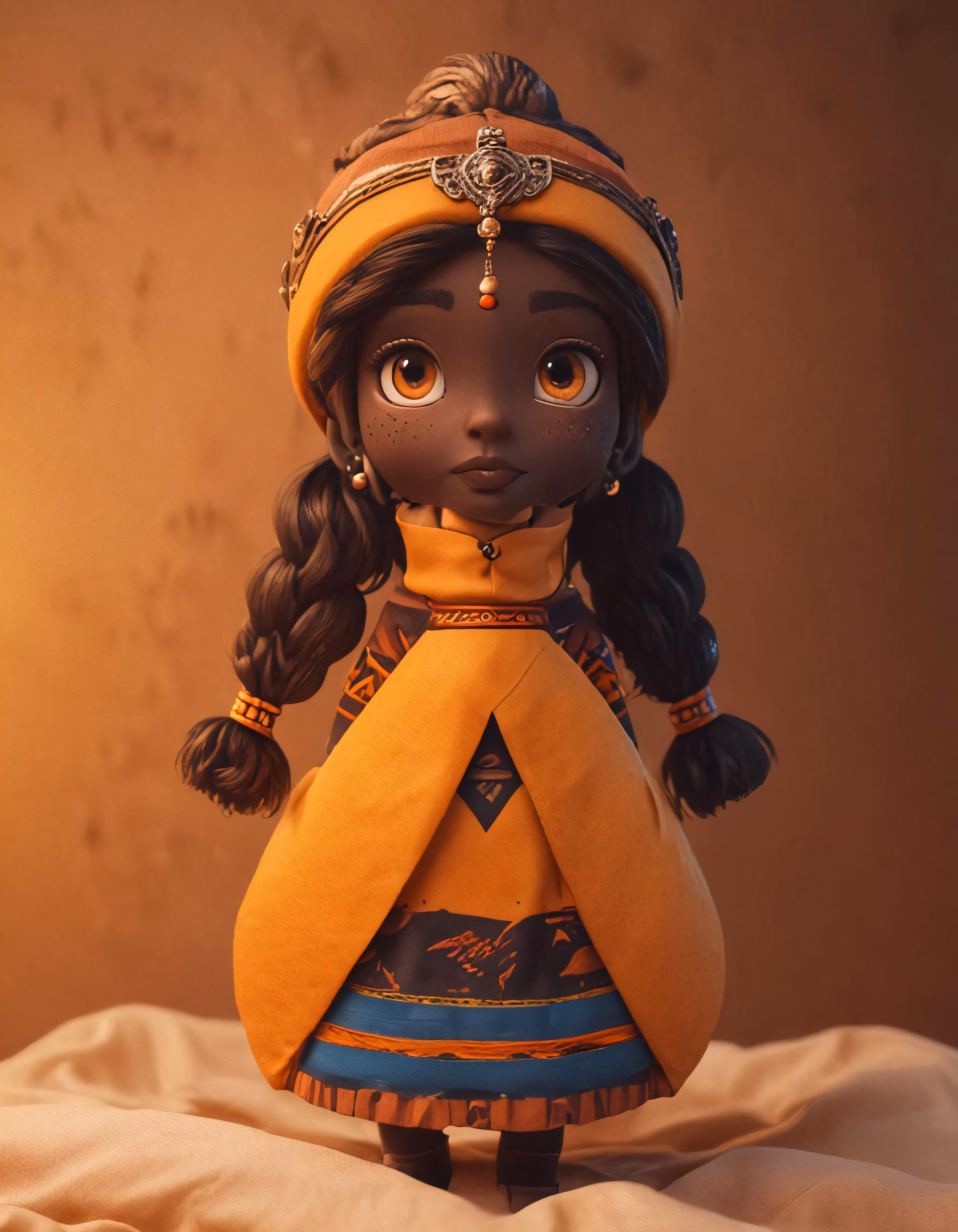 High resolution picture, free to use, a doll that has long braids and a yellow dress