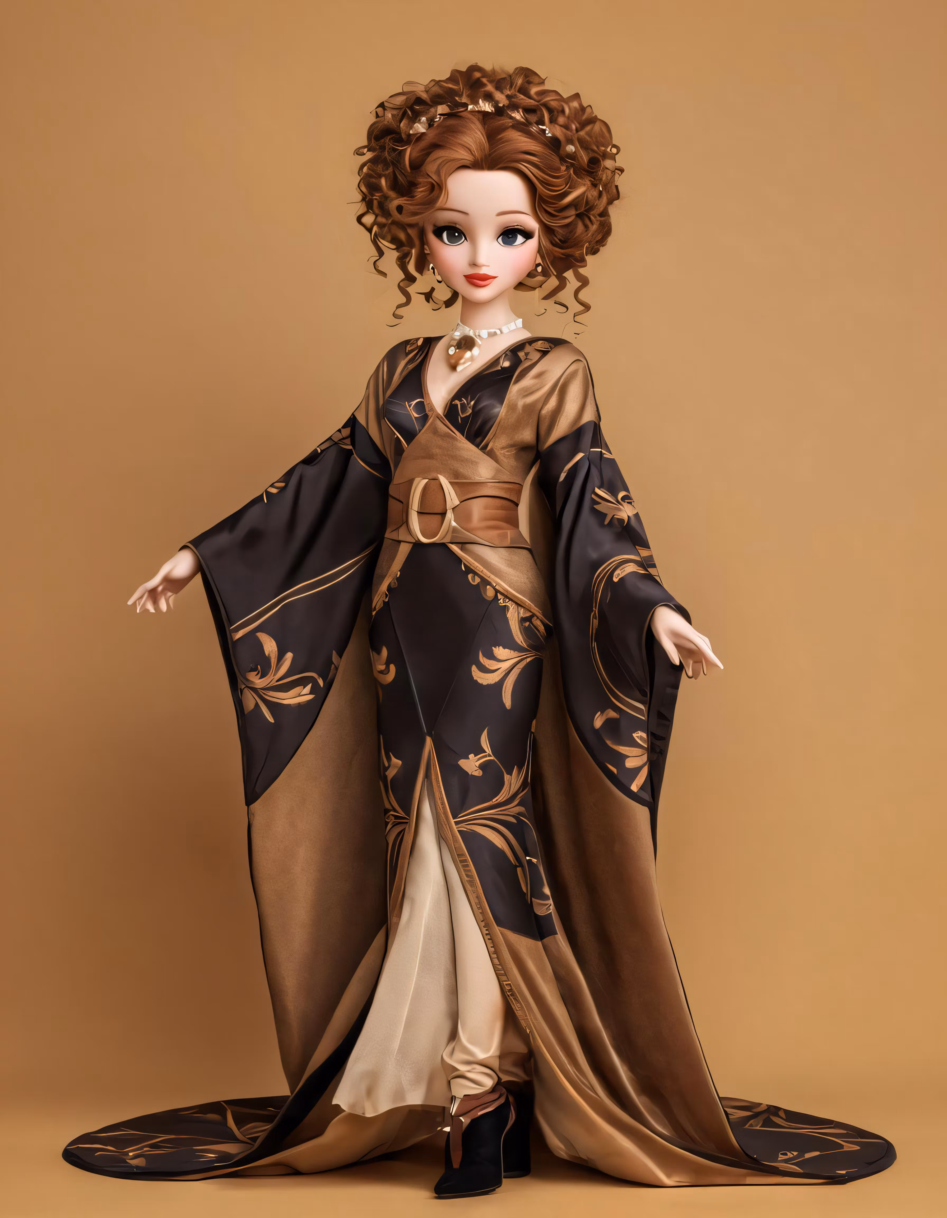 High resolution picture, free to use, a doll wearing a dress and headpiece