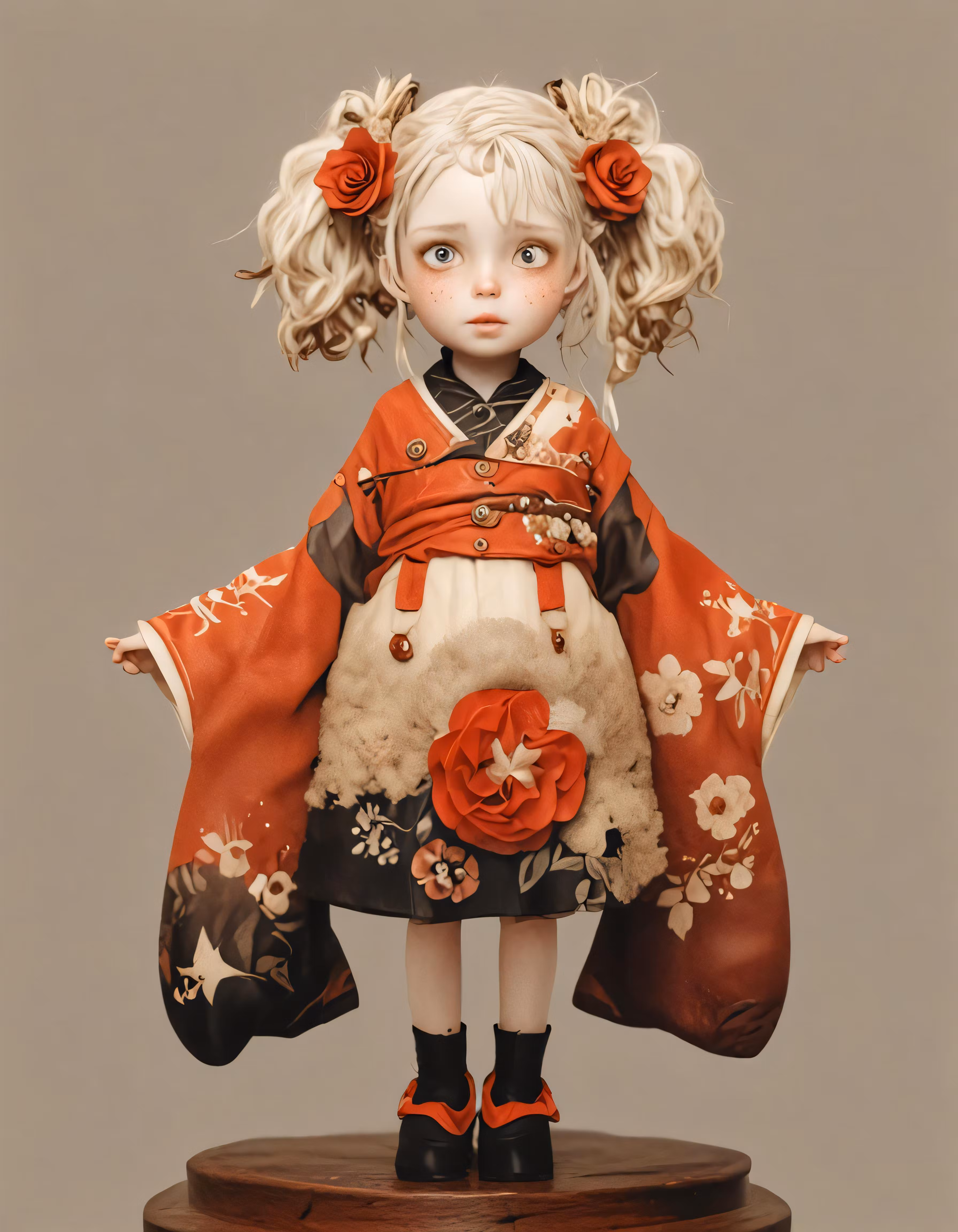 High resolution picture, free to use, a doll with blond hair and red cape stands on a table