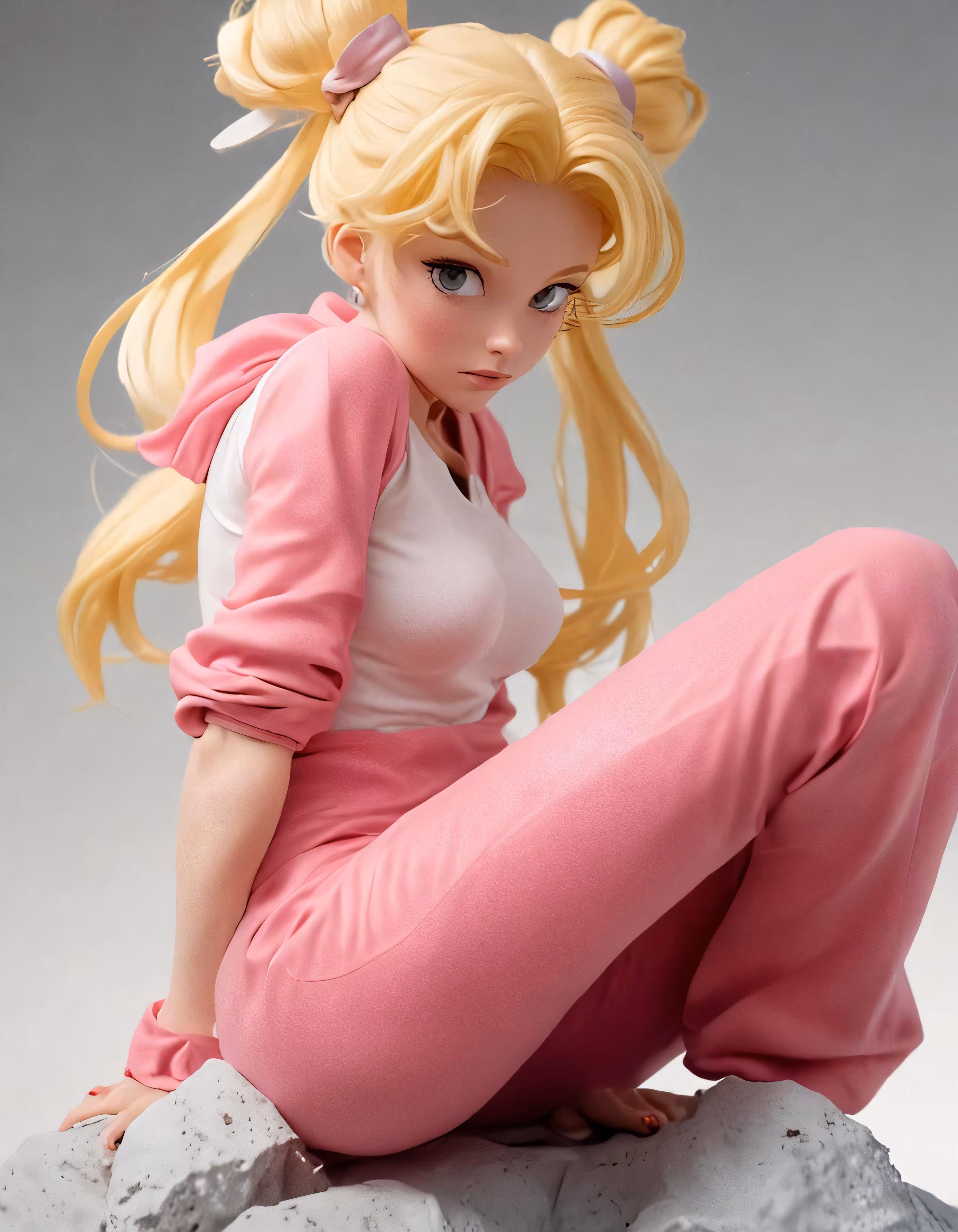 High resolution picture, free to use, a doll with blond hair wearing pink pants and a white shirt