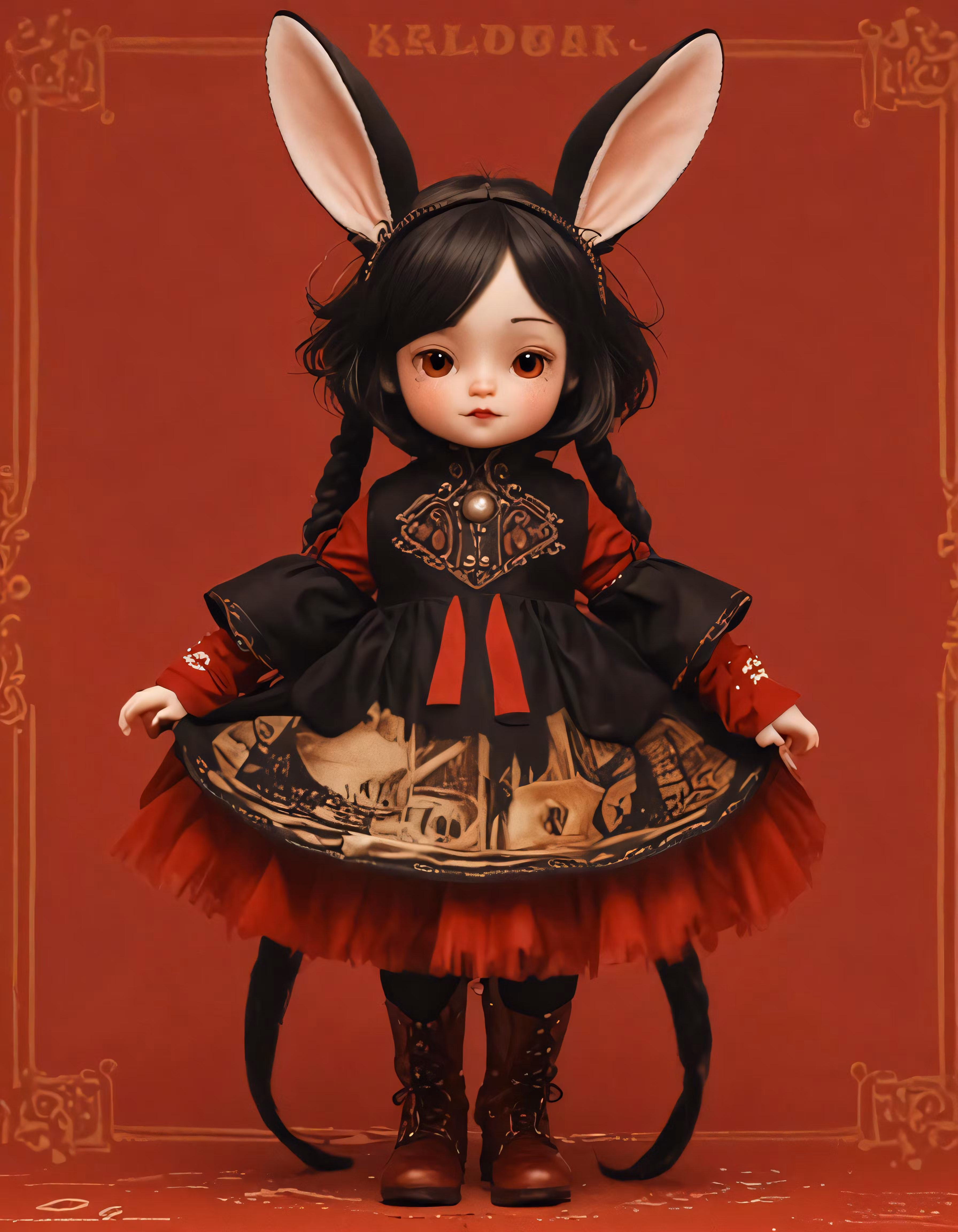 High resolution picture, free to use, a doll with bunny ears wearing a red dress