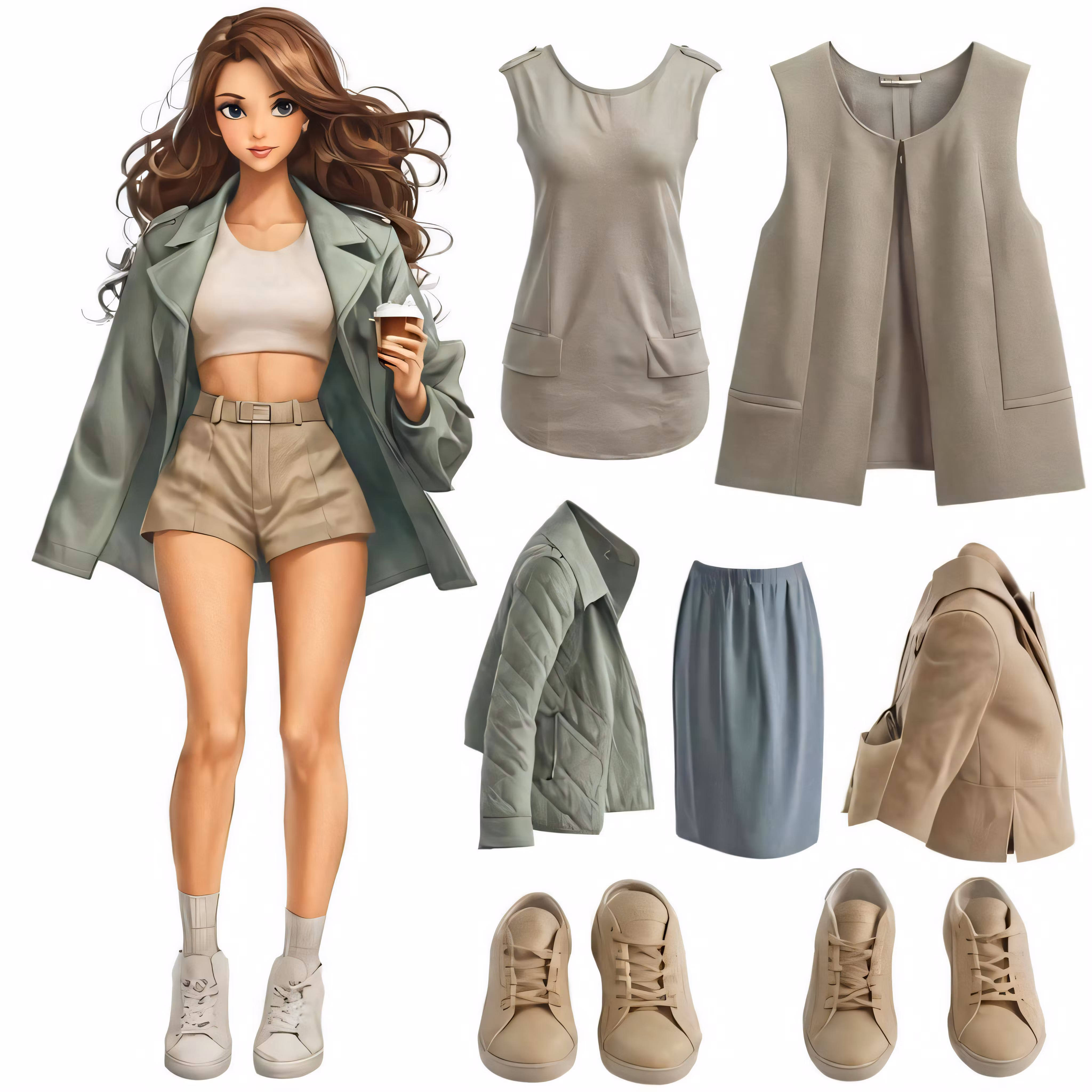 High resolution picture, free to use, a doll with two different outfits and one outfit for the dolls