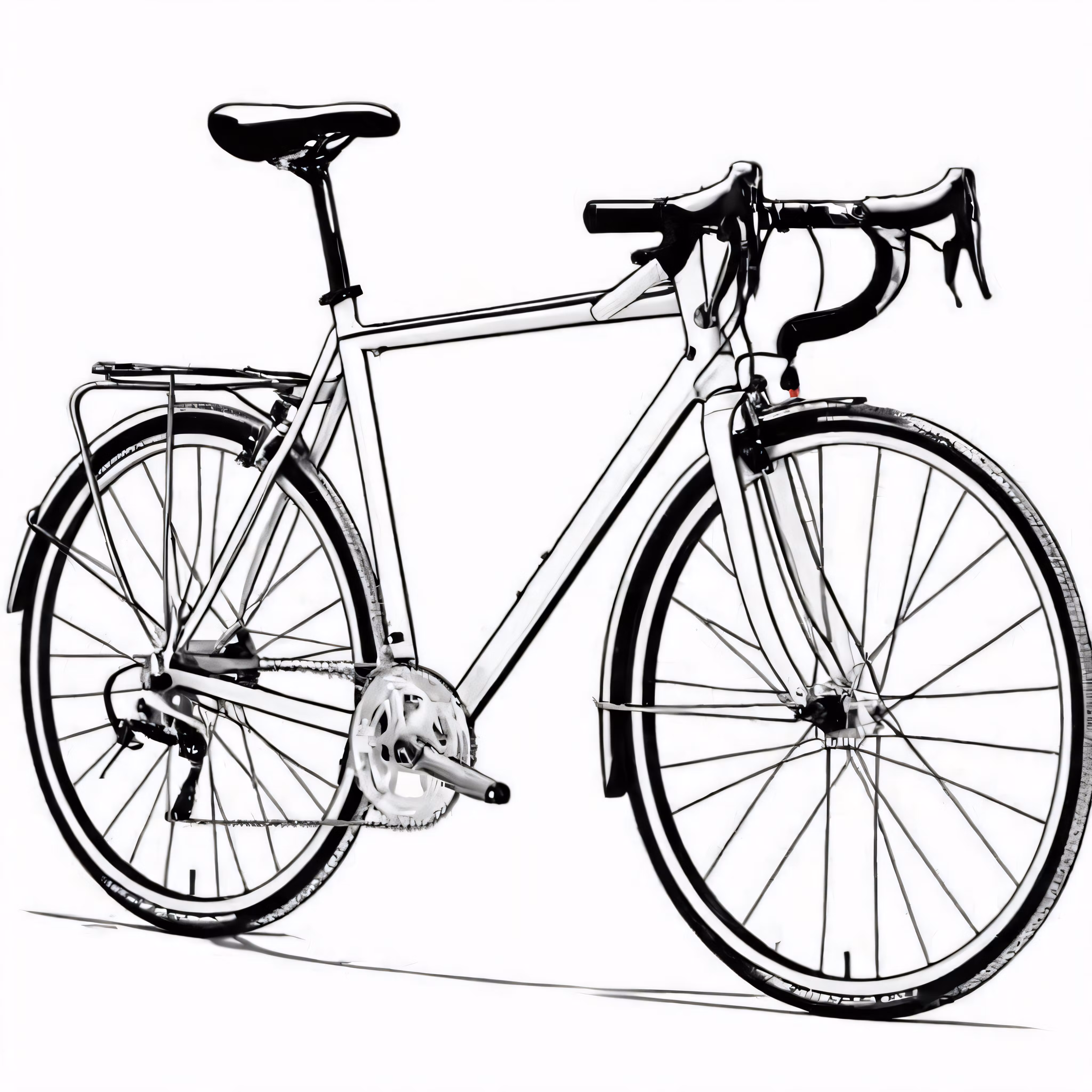 High resolution picture, free to use, a drawing of a bicycle is shown in black and white