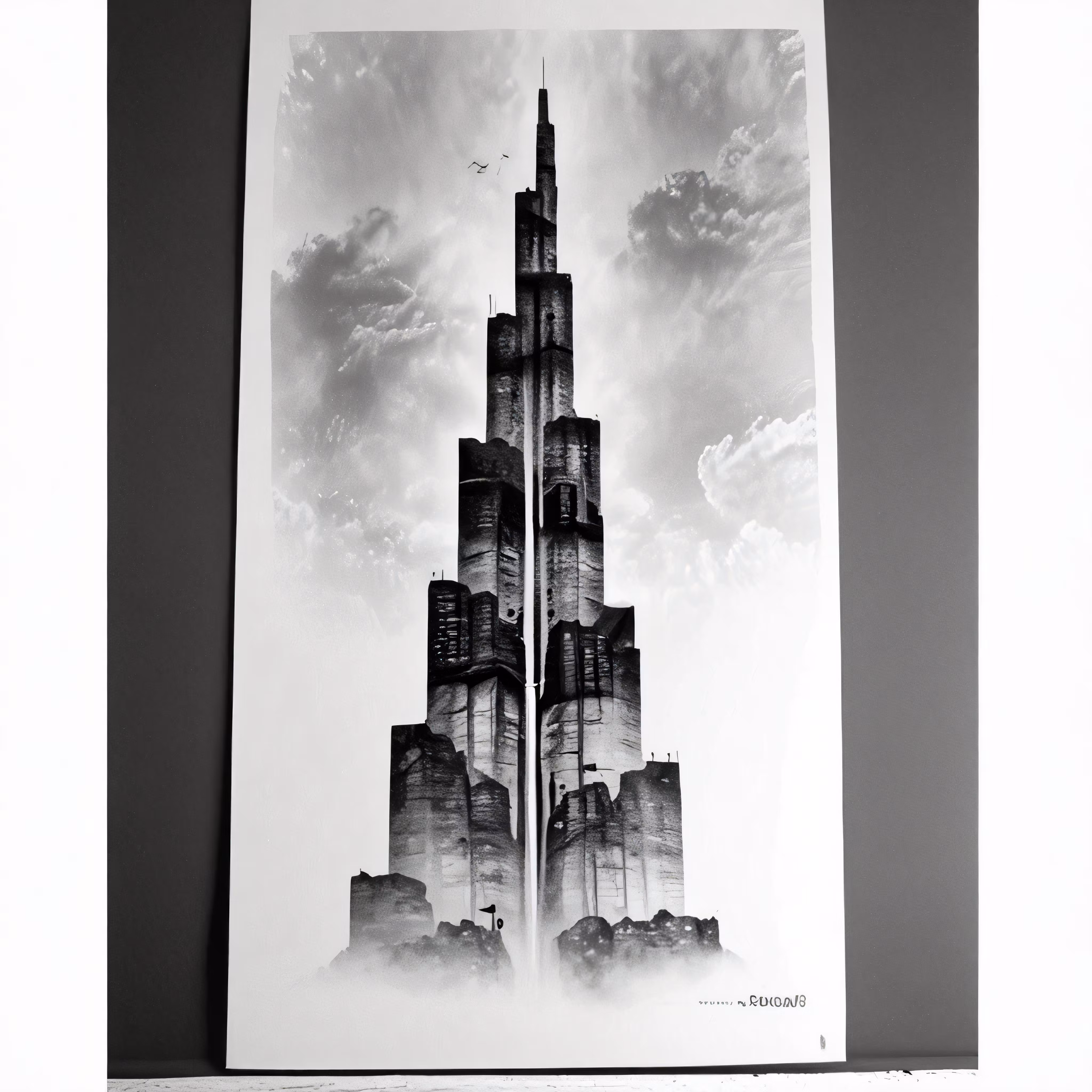 High resolution picture, free to use, a drawing of a building in the middle of nowhere