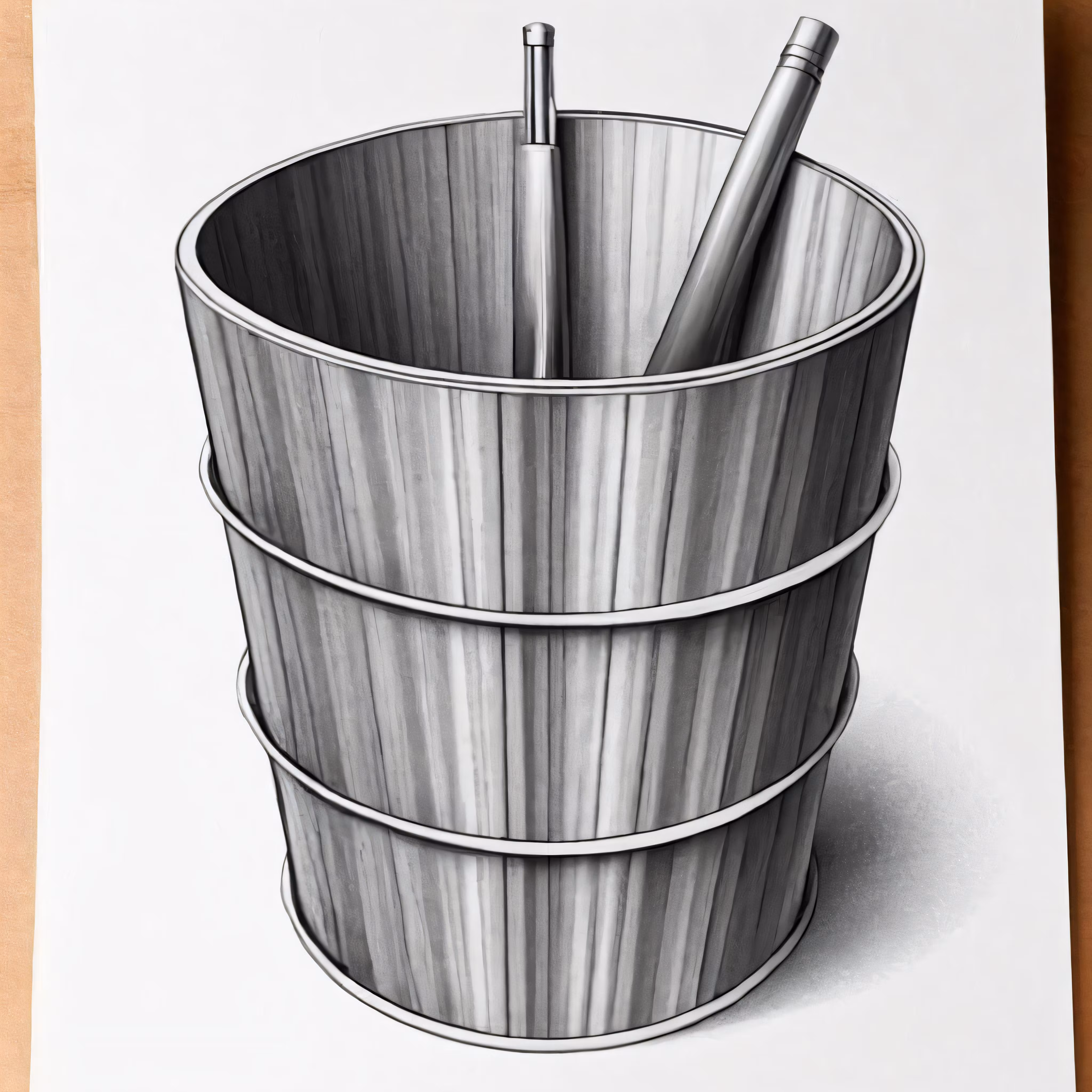 High resolution picture, free to use, a drawing of a cup with a pen