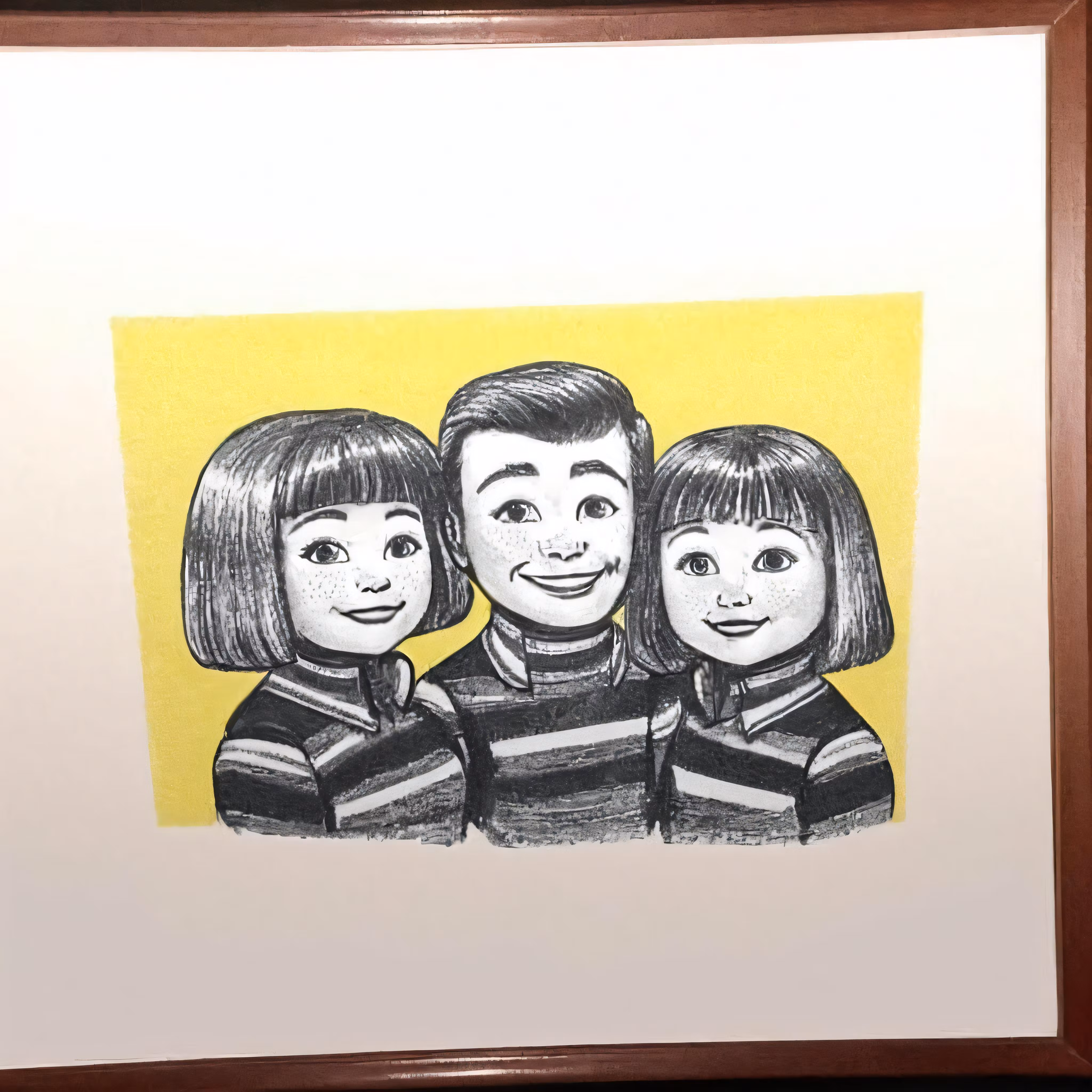 High resolution picture, free to use, a drawing of a family portrait on yellow paper