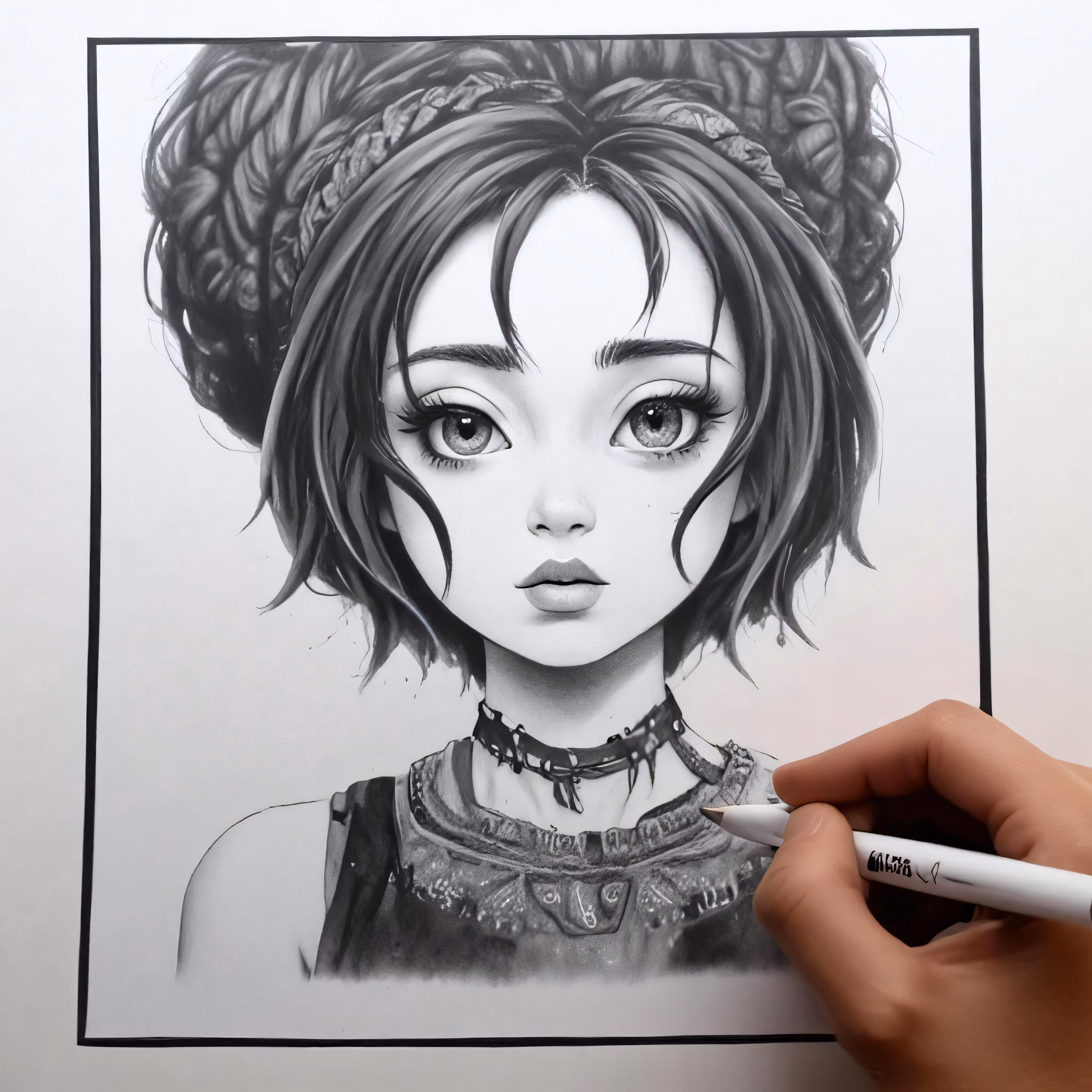 High resolution picture, free to use, a drawing of a female with black hair