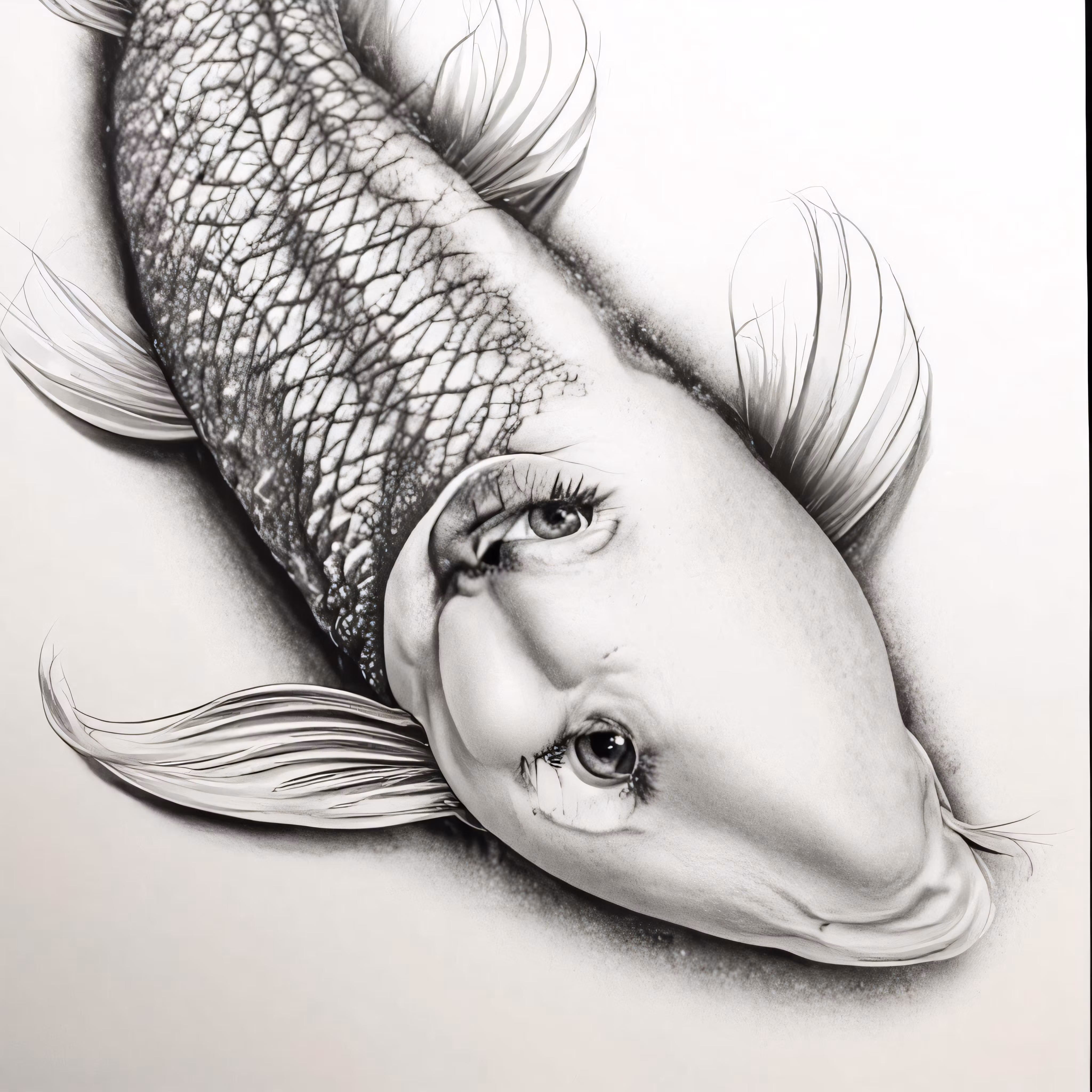High resolution picture, free to use, a drawing of a fish with one eye showing