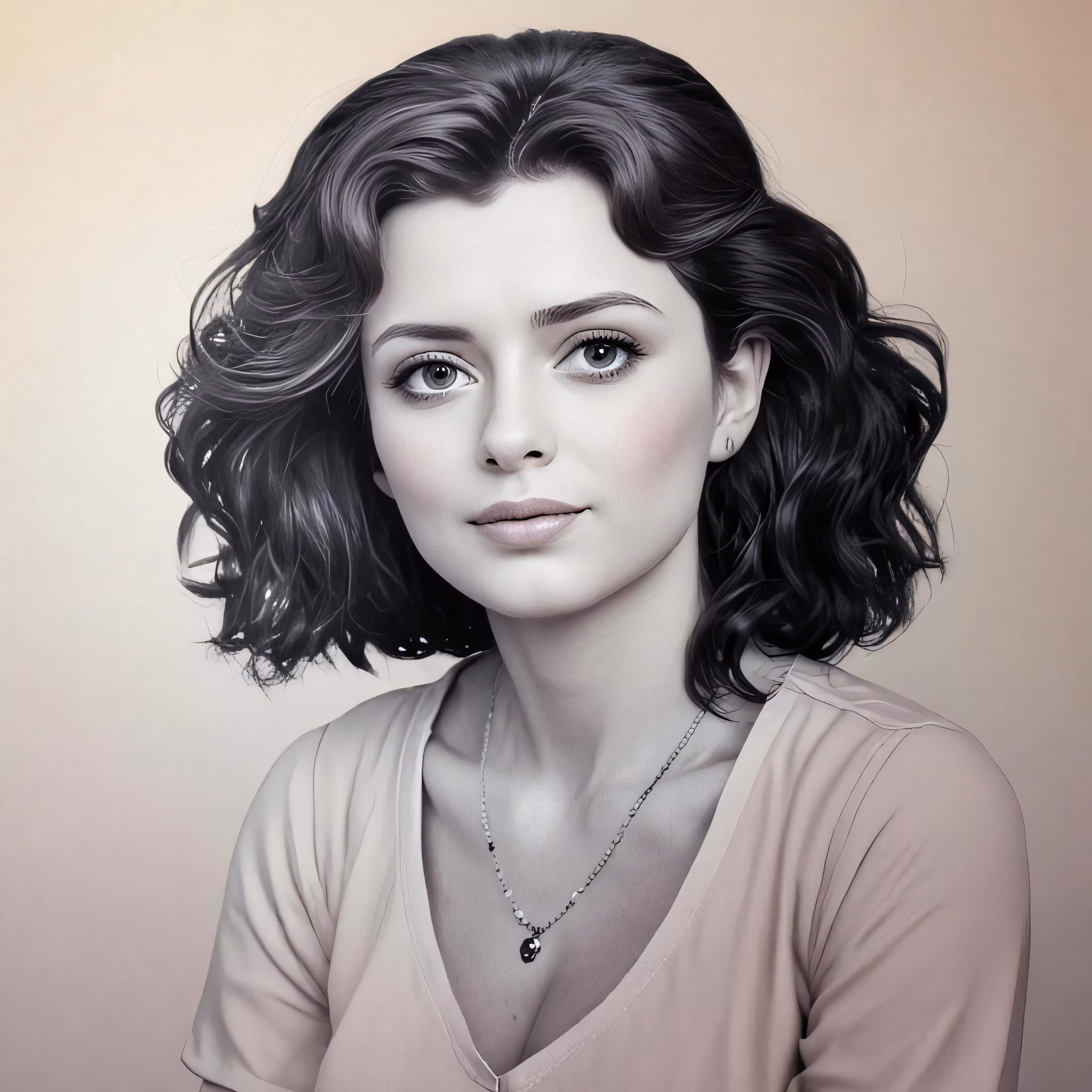 High resolution picture, free to use, a drawing of a girl wearing a necklace