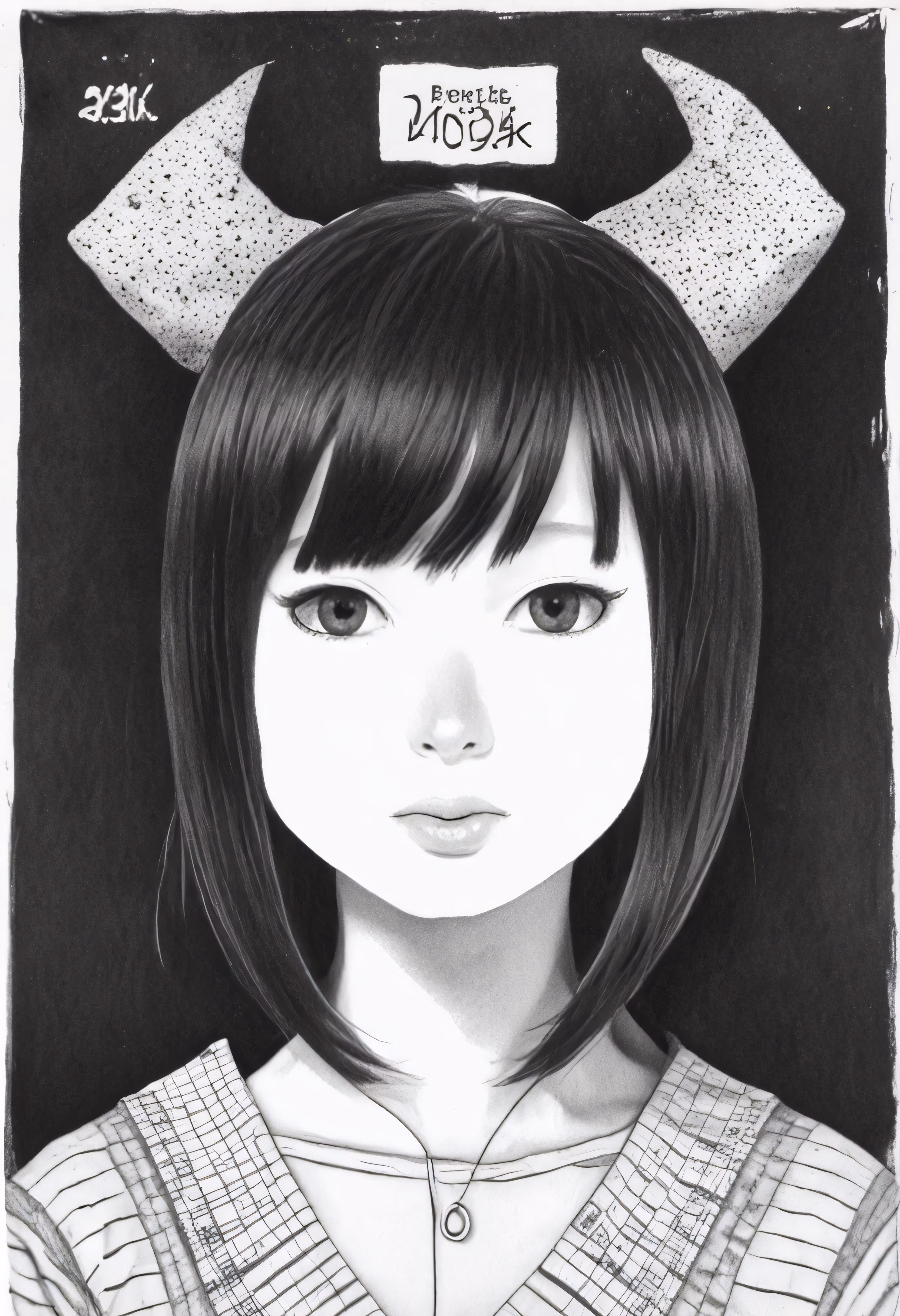 High resolution picture, free to use, a drawing of a girl with horns and haircuts