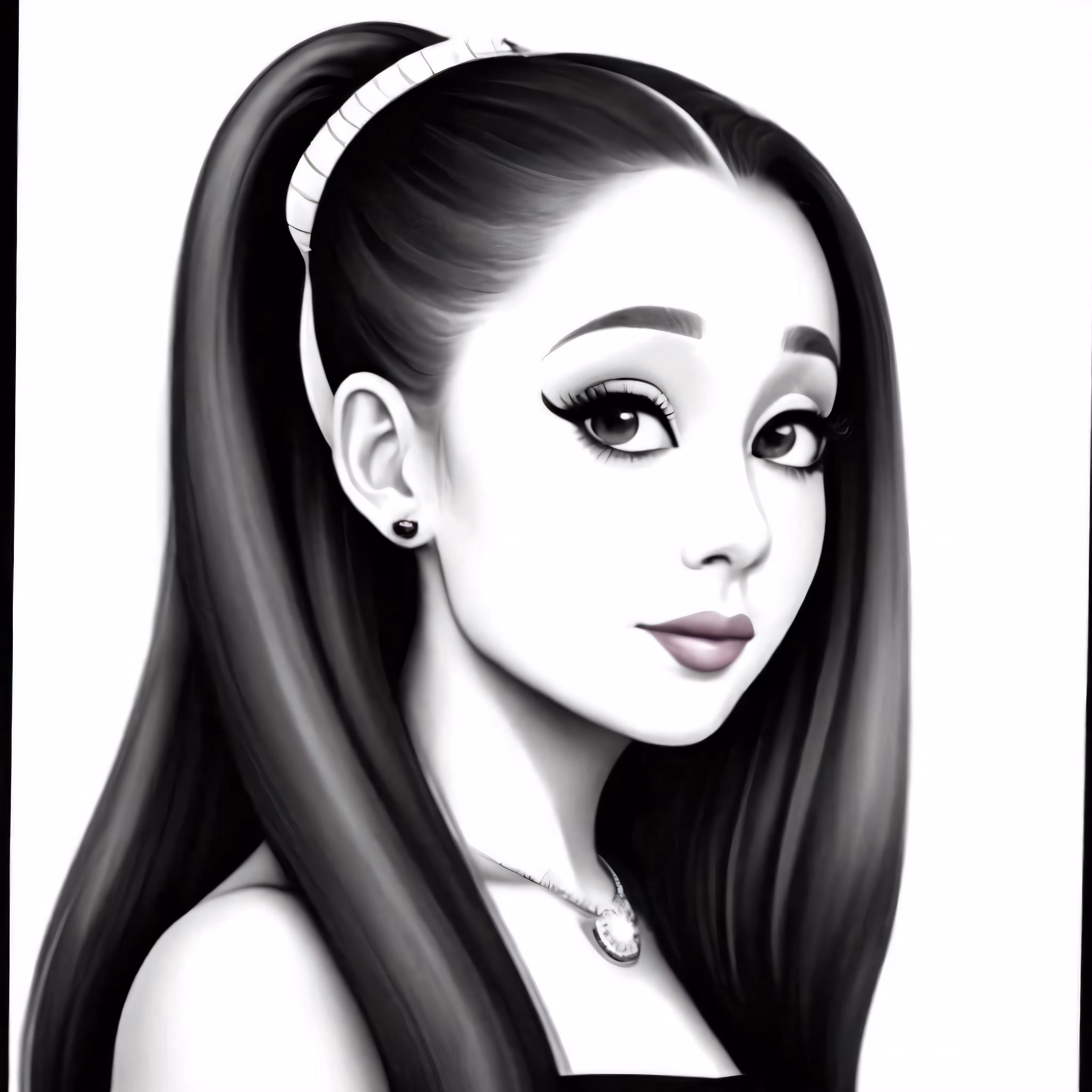 High resolution picture, free to use, a drawing of a girl with long black hair