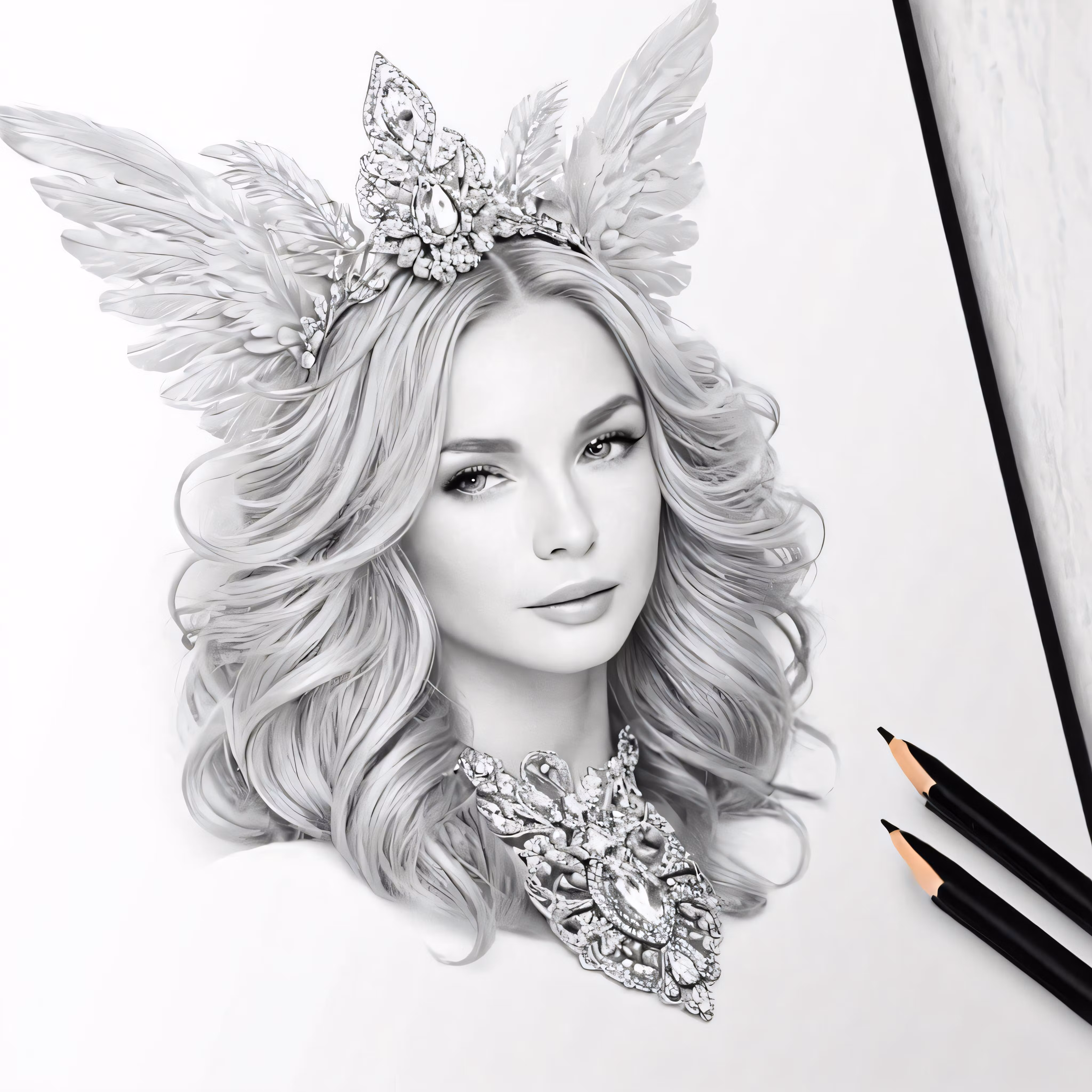 High resolution picture, free to use, a drawing of a girl with wings on her head