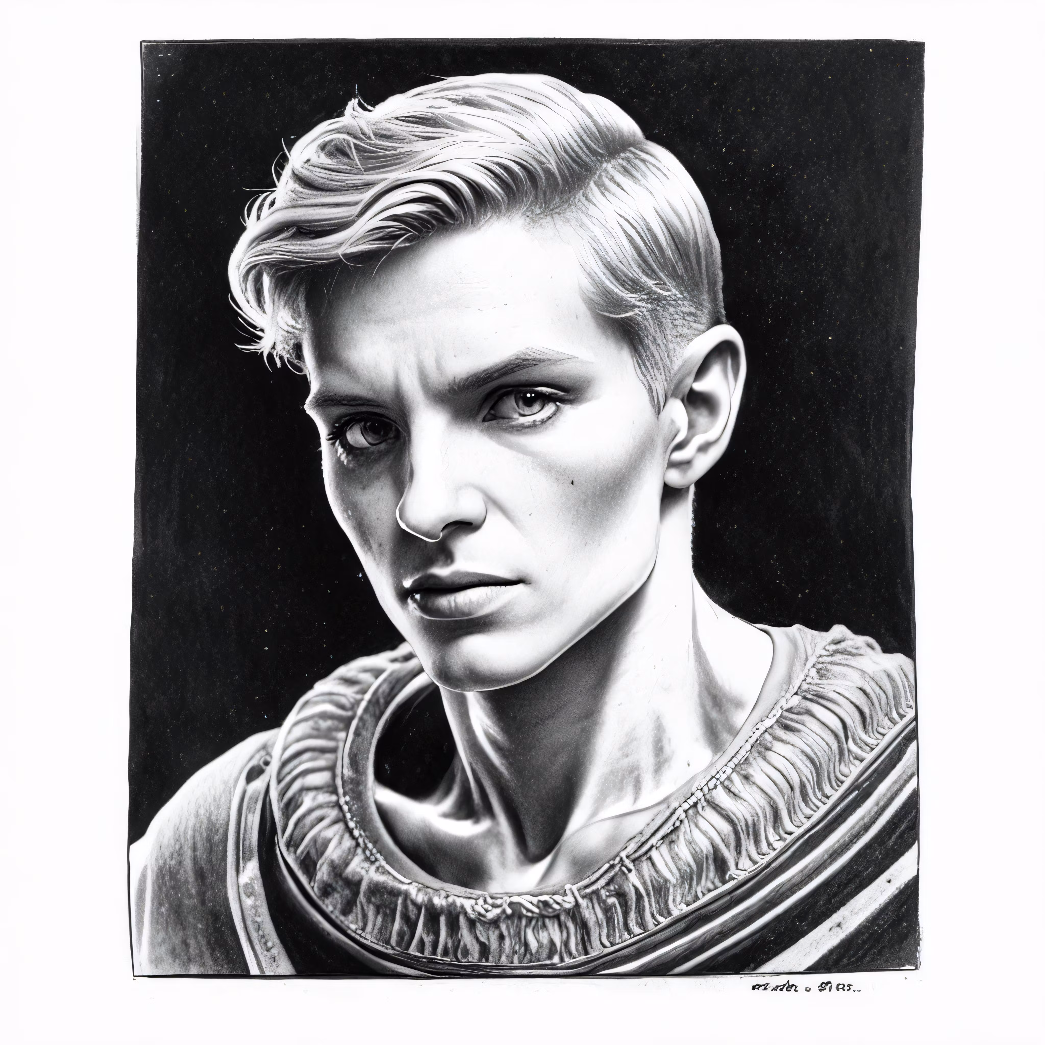 High resolution picture, free to use, a drawing of a man with blonde hair and blue eyes