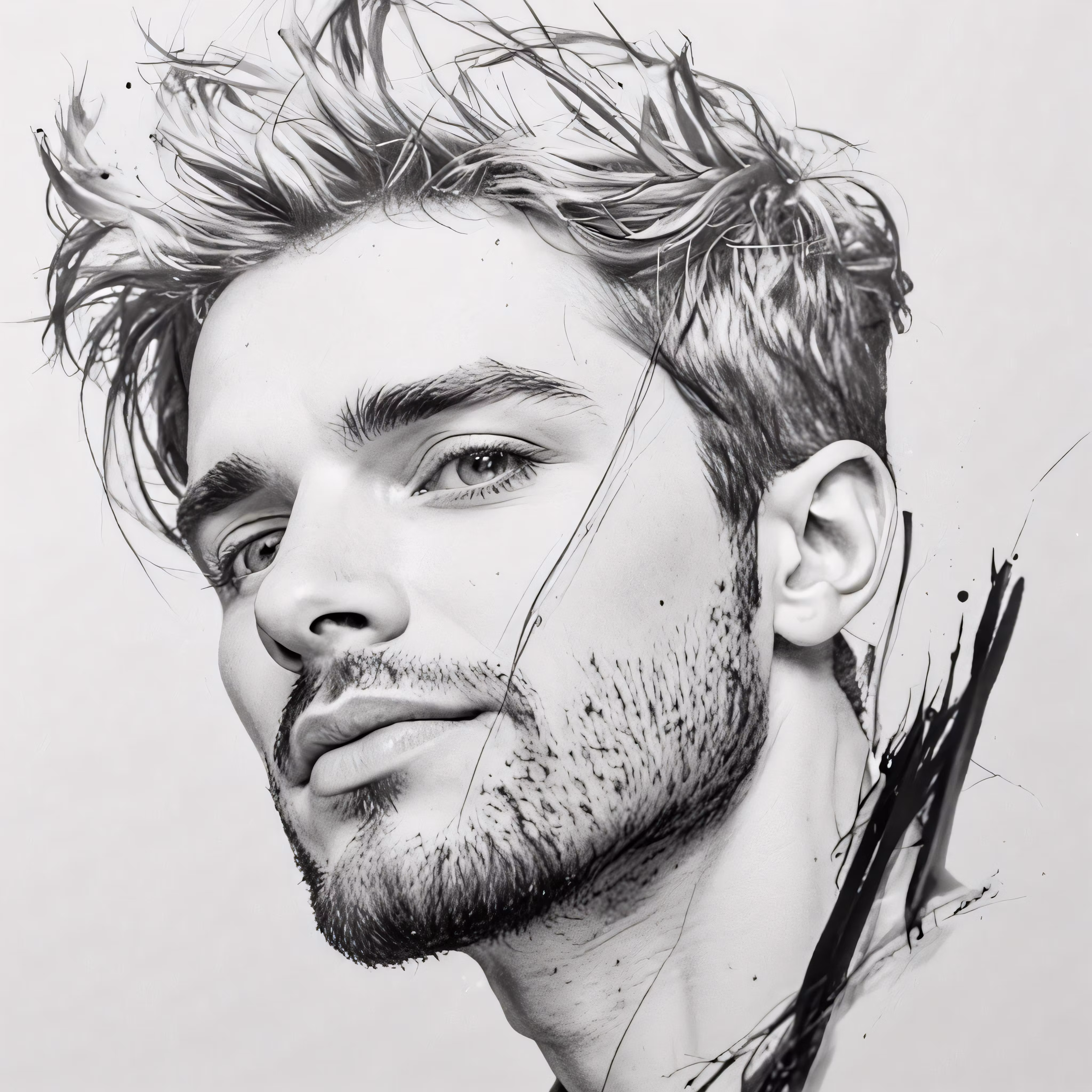 High resolution picture, free to use, a drawing of a man with long hair and beard