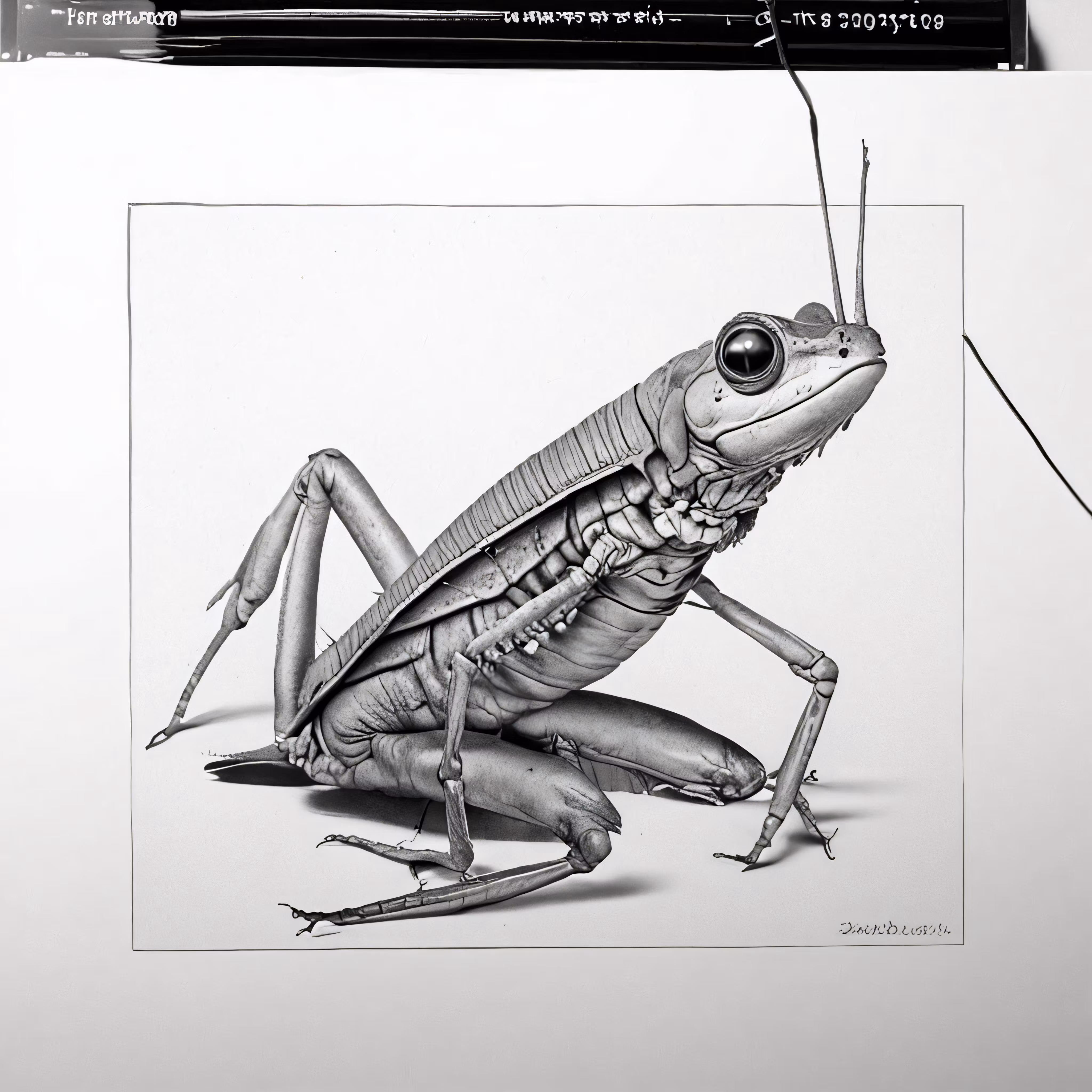 High resolution picture, free to use, a drawing of a mantisbee on paper with marker