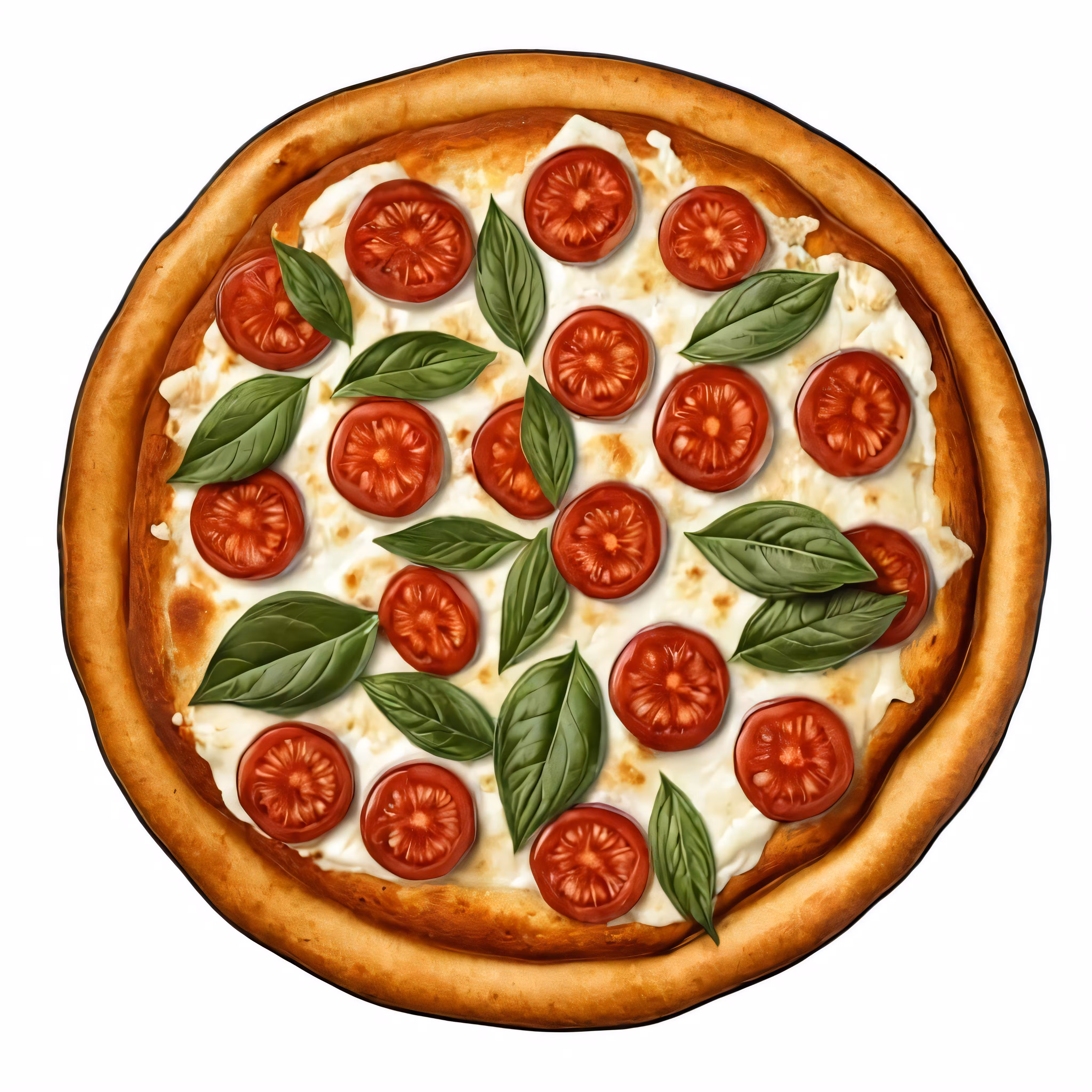High resolution picture, free to use, a drawing of a pizza with tomatoes on it