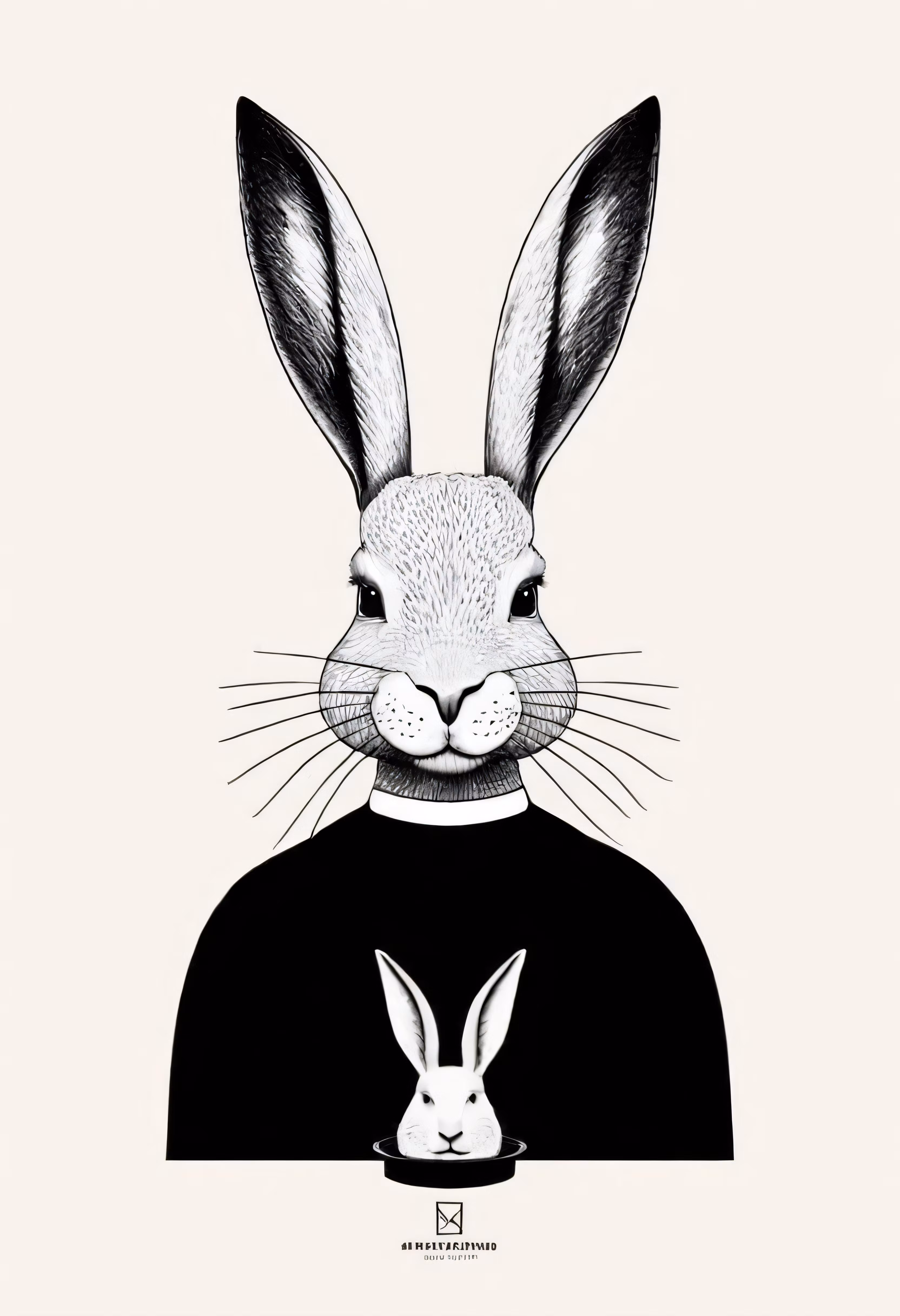 High resolution picture, free to use, a drawing of a rabbit with its face in the center