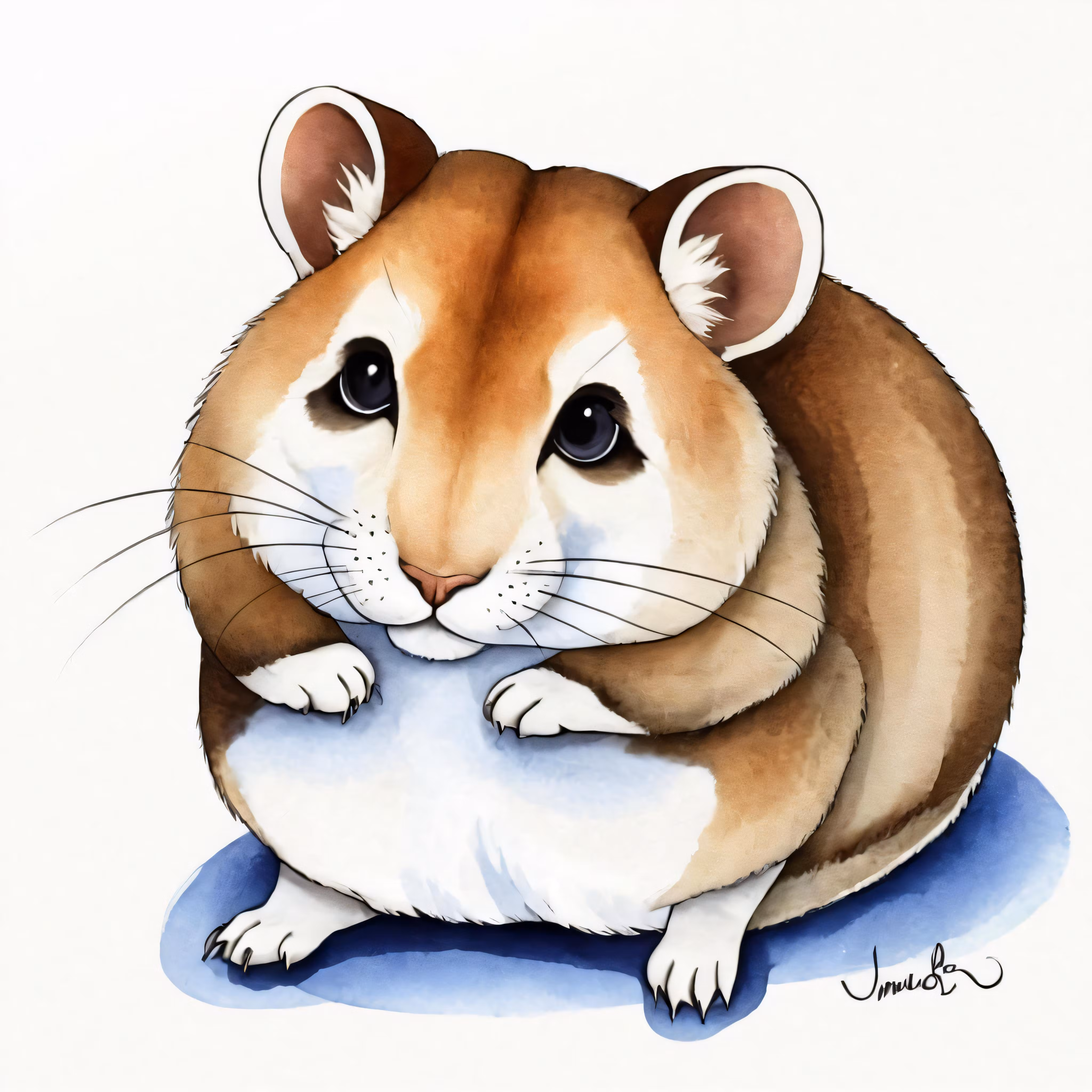High resolution picture, free to use, a drawing of a small, furry hamster sitting