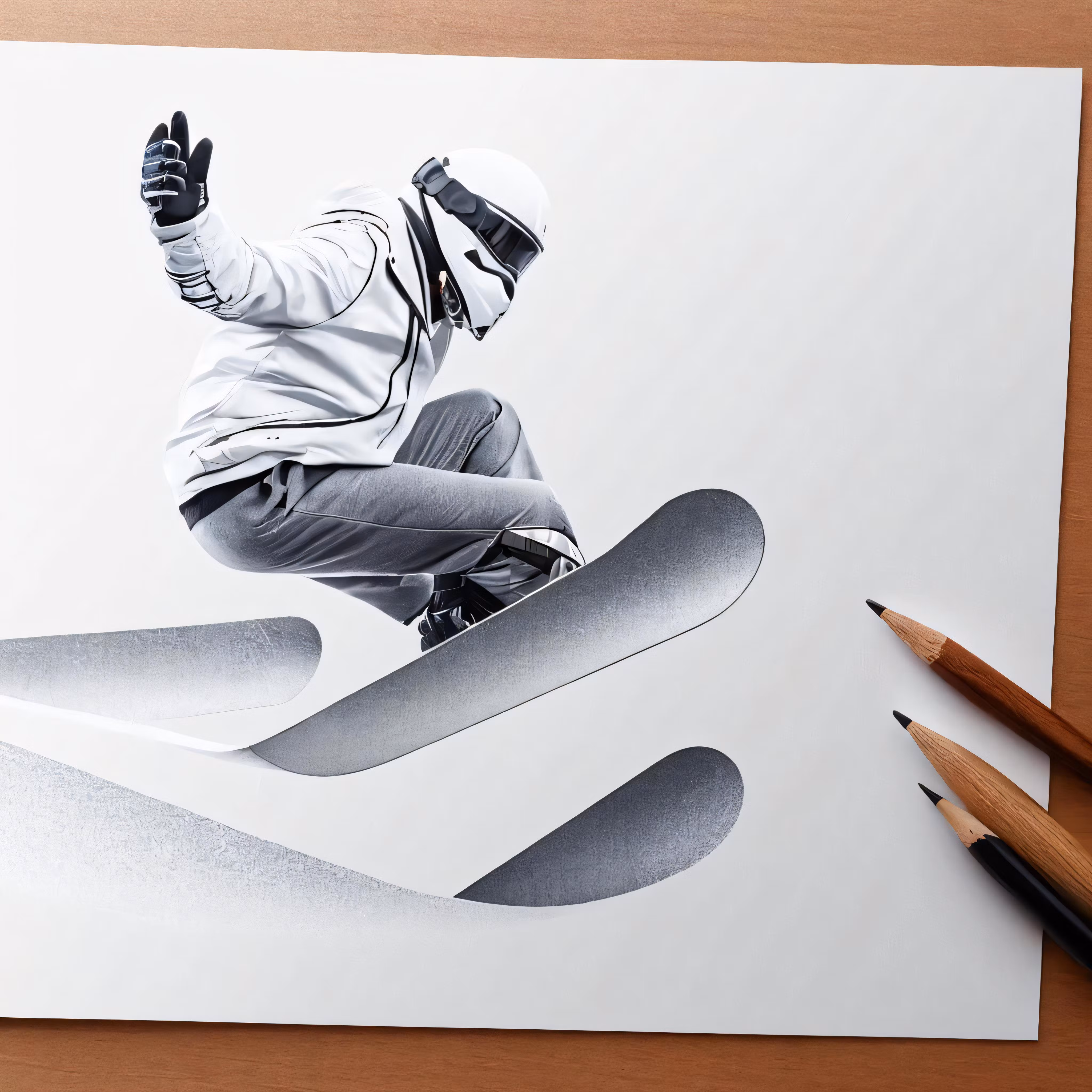 High resolution picture, free to use, a drawing of a snowboarder doing a trick