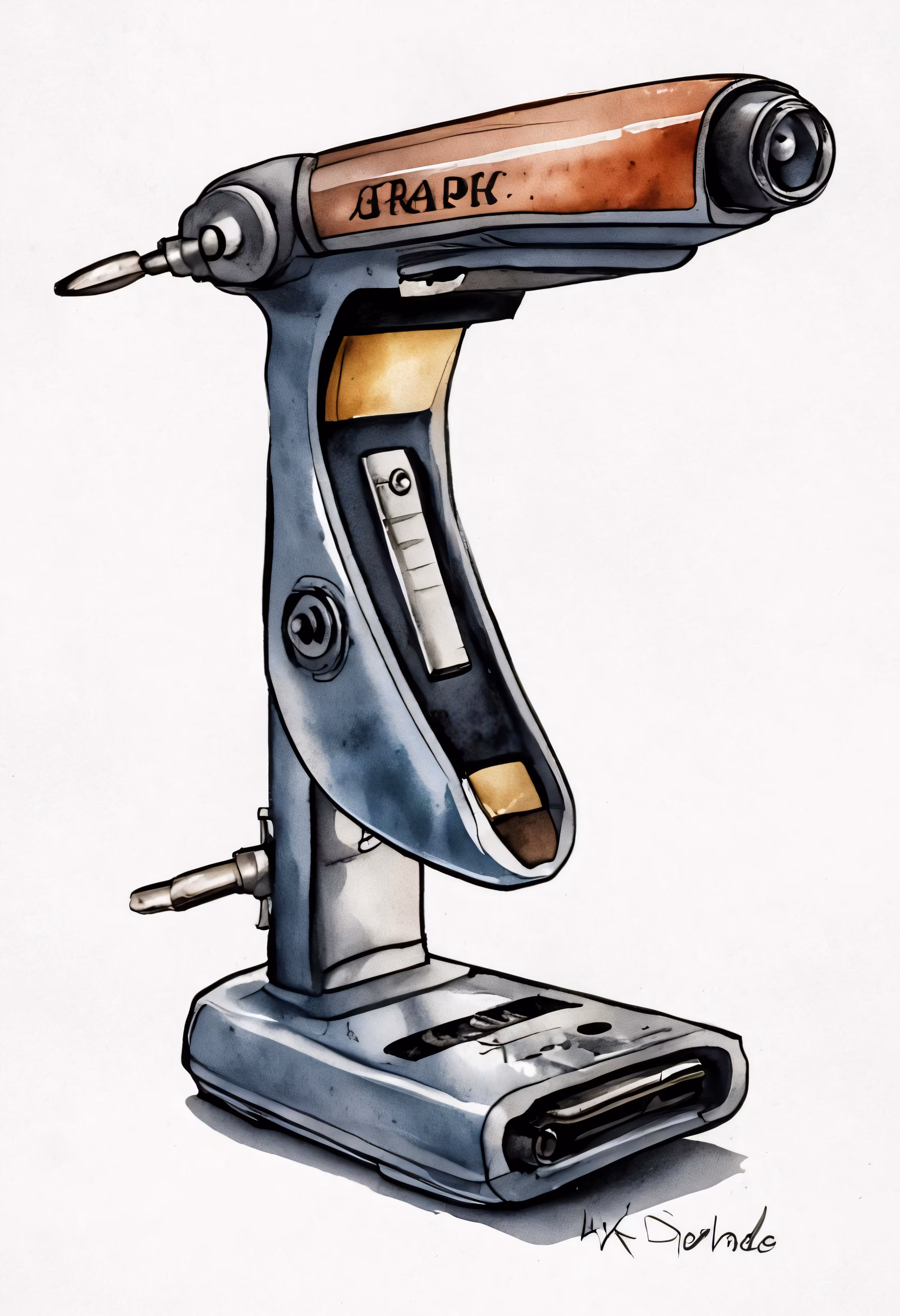 High resolution picture, free to use, a drawing of a stapler with a pen on top of it