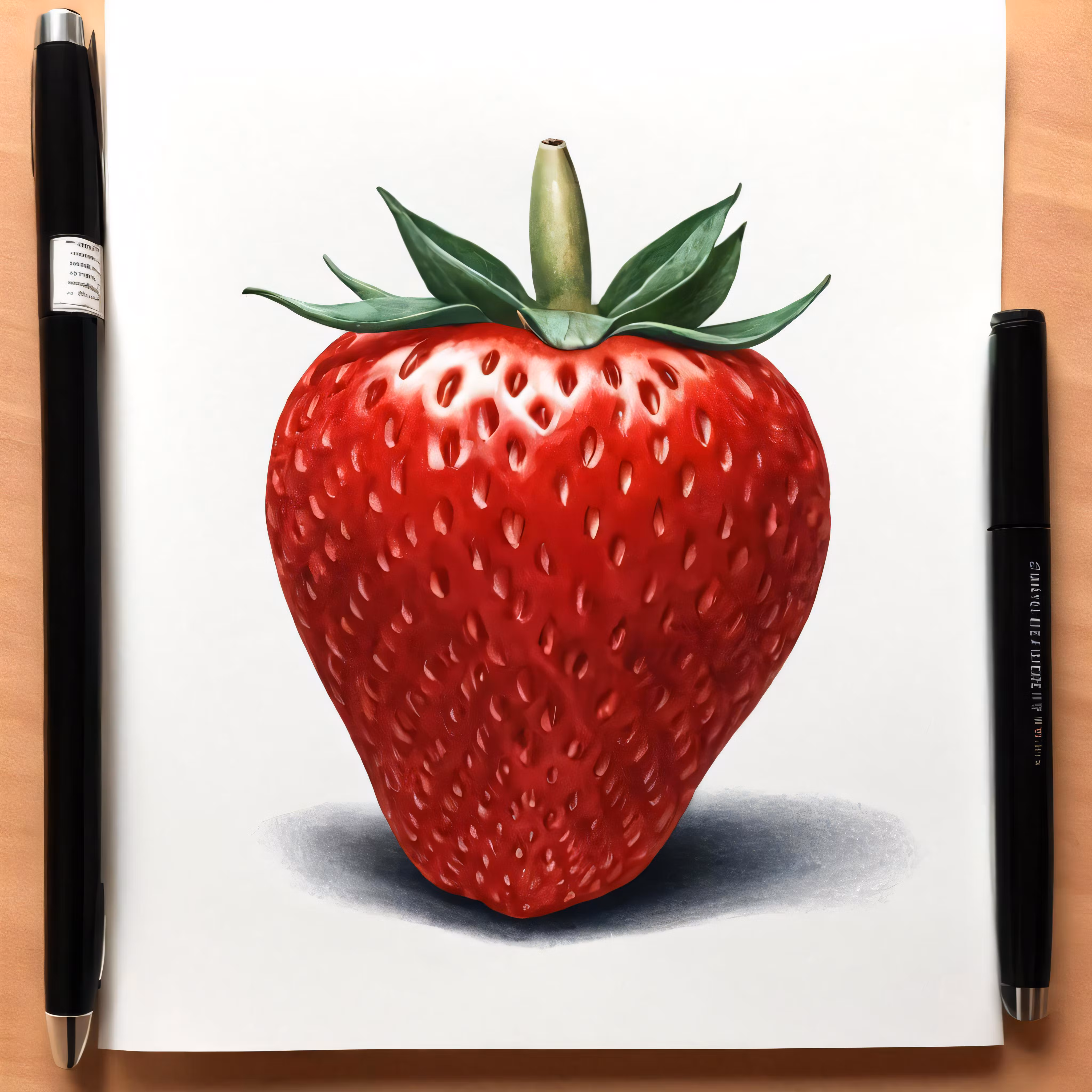 High resolution picture, free to use, a drawing of a strawberry with the stem showing