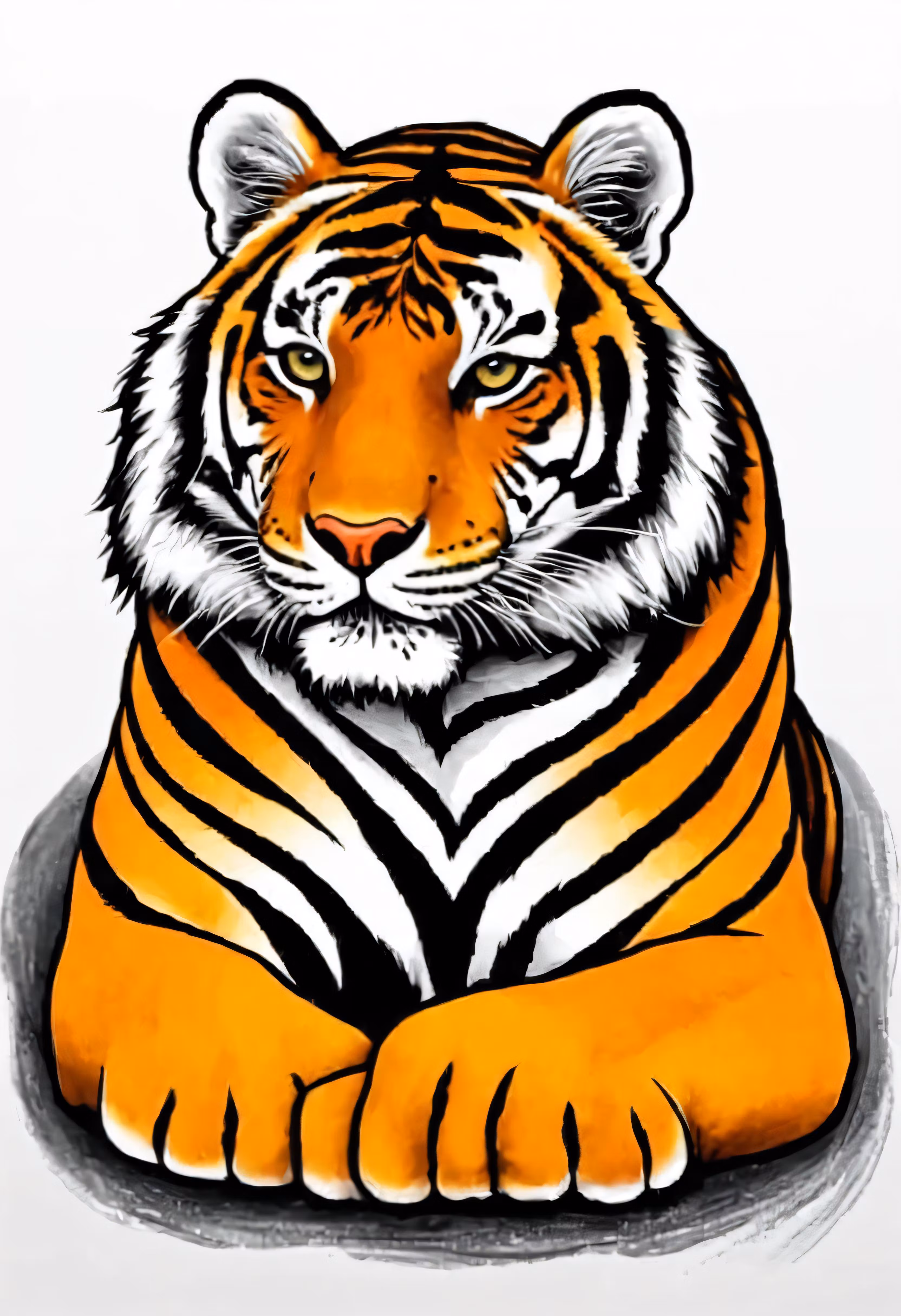 High resolution picture, free to use, a drawing of a tiger in color on white paper