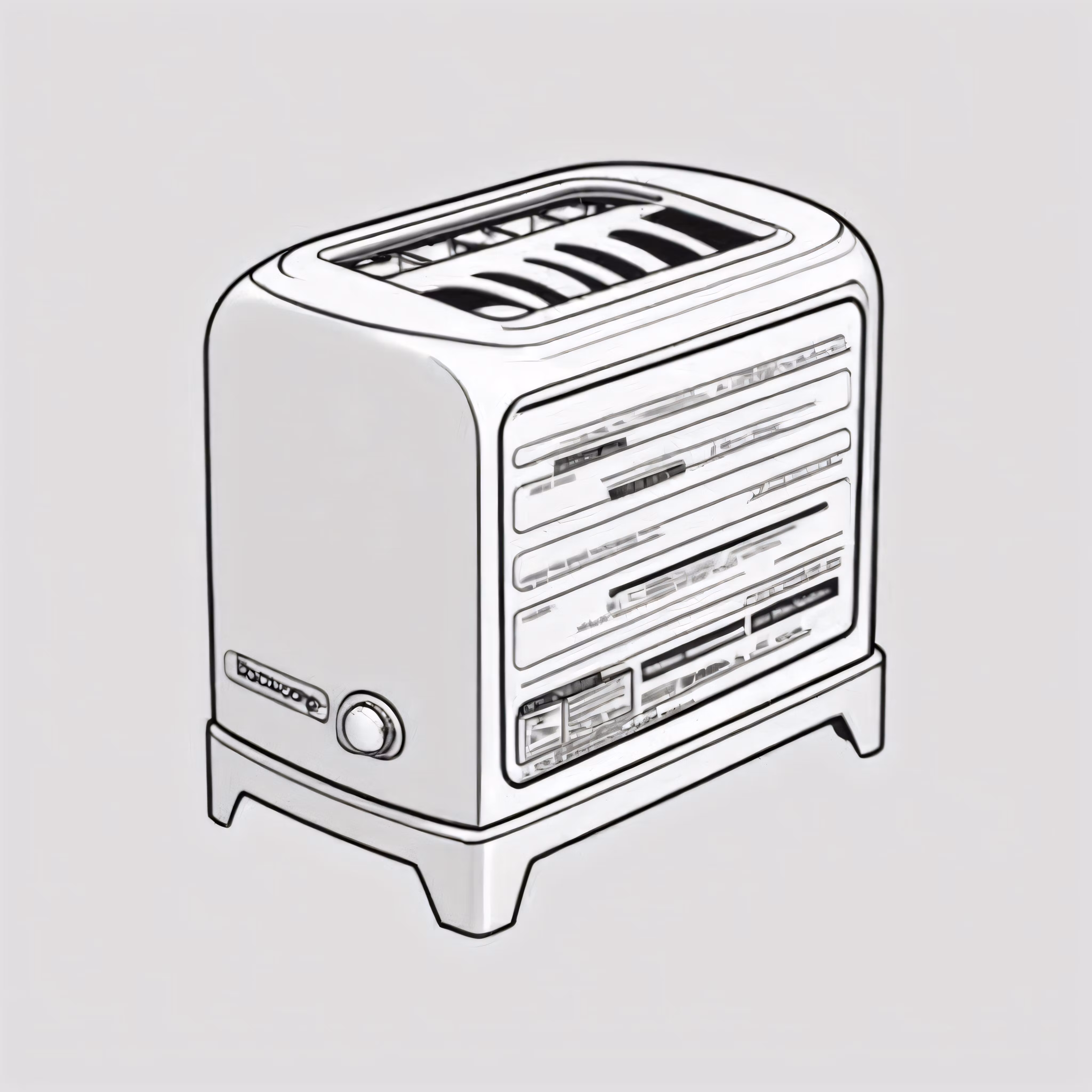 High resolution picture, free to use, a drawing of a toaster that is white with a black trim