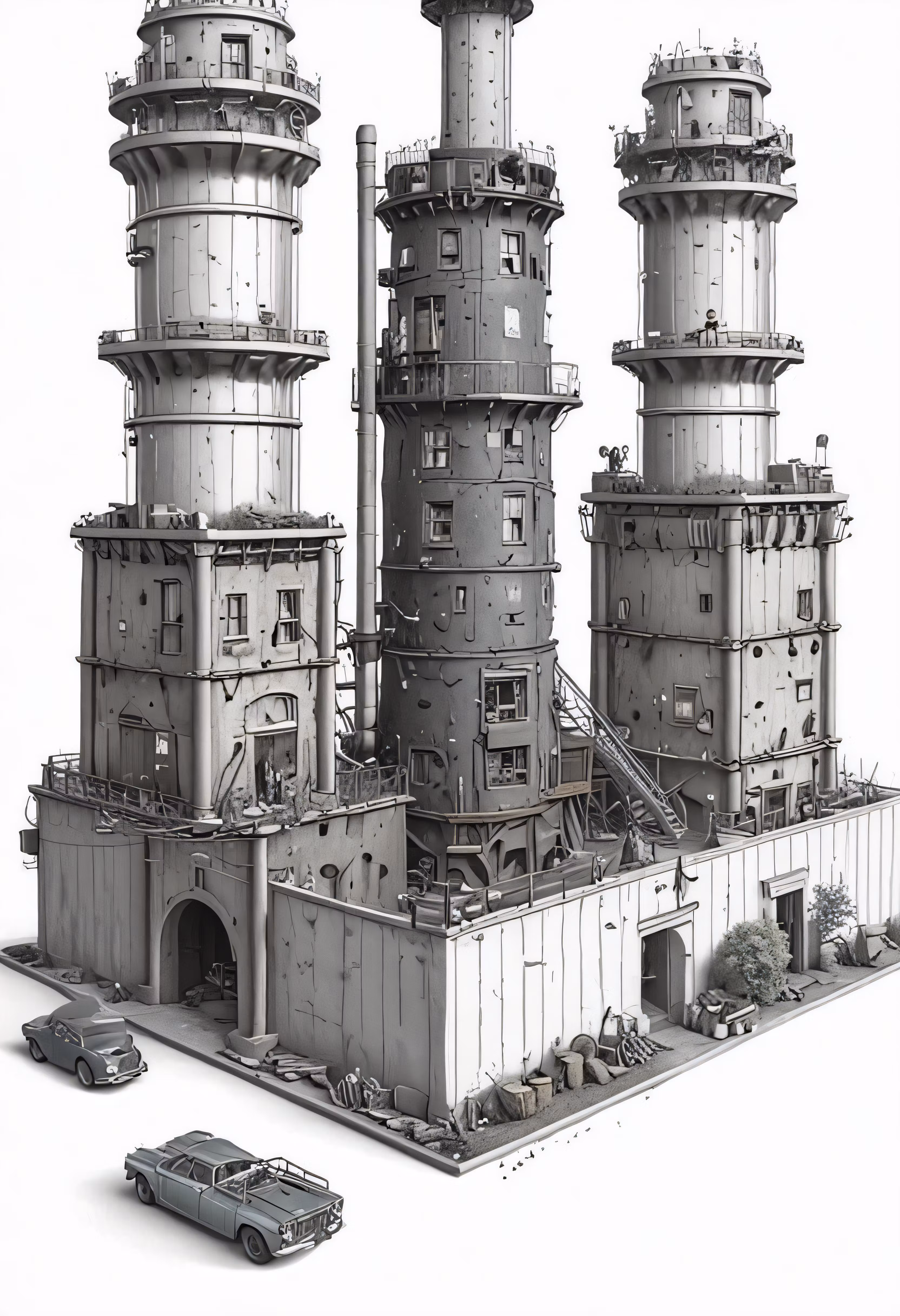 High resolution picture, free to use, a drawing of a very large industrial factory