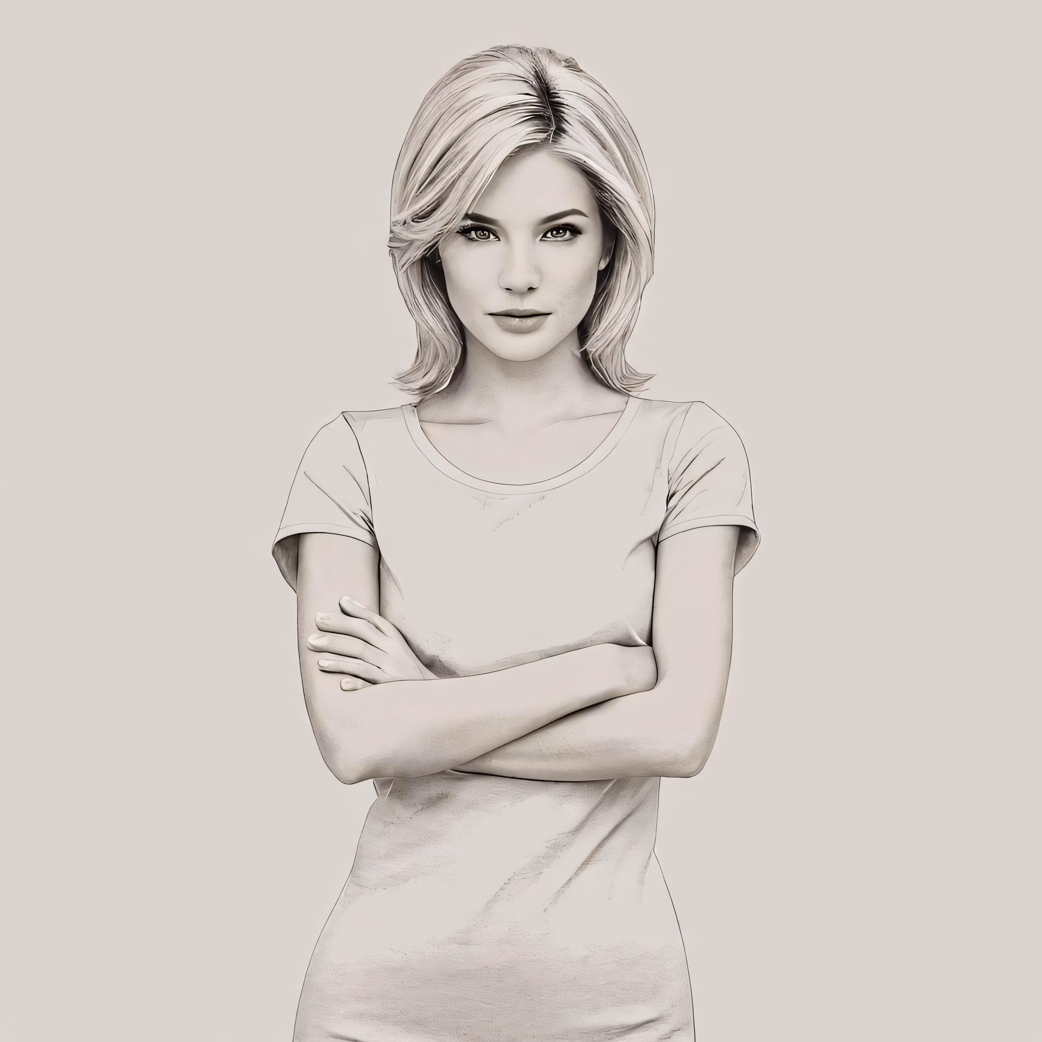 High resolution picture, free to use, a drawing of a woman wearing a short dress