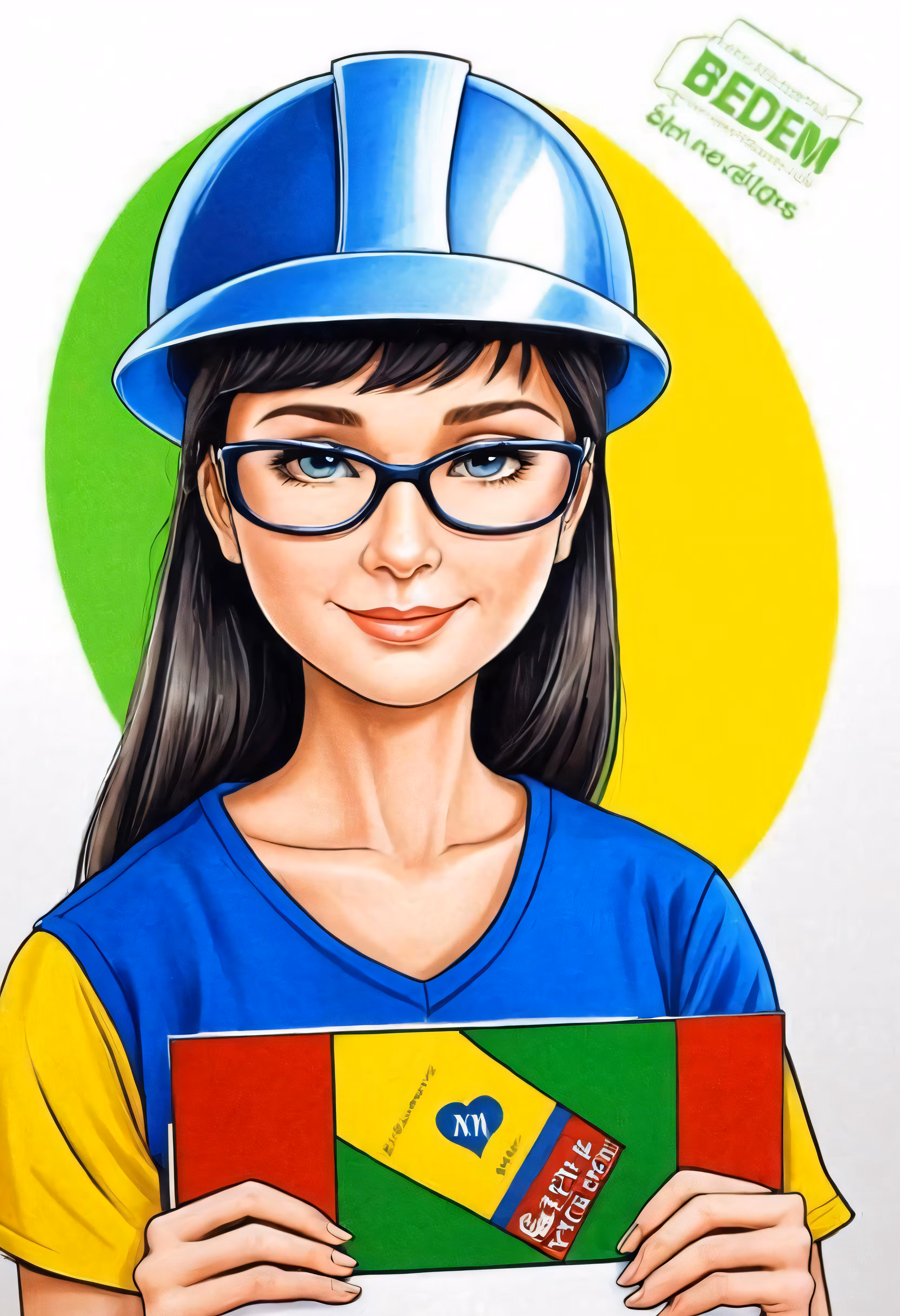 High resolution picture, free to use, a drawing of a woman wearing glasses and a hardhat