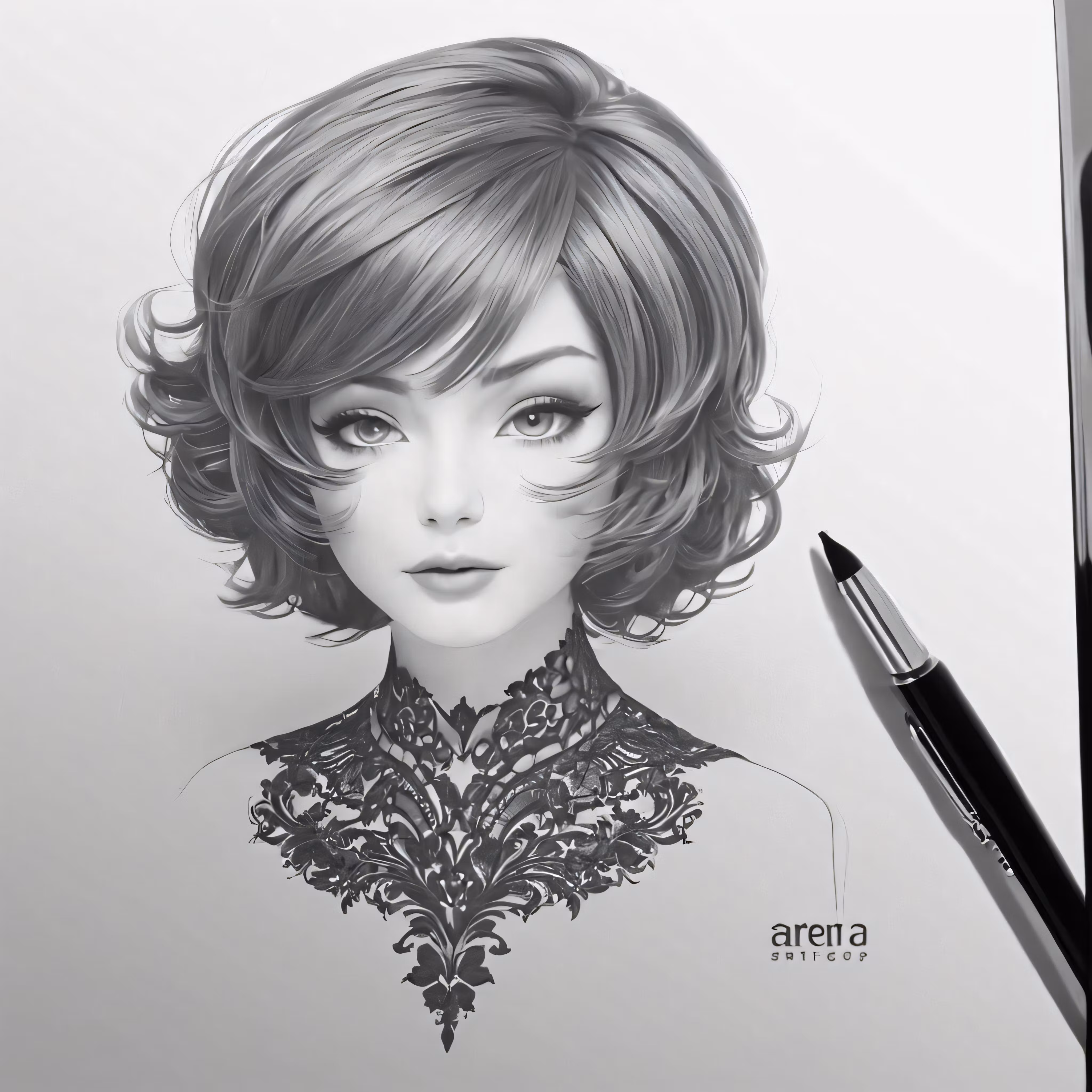 High resolution picture, free to use, a drawing of a woman with a short, shaggy hair
