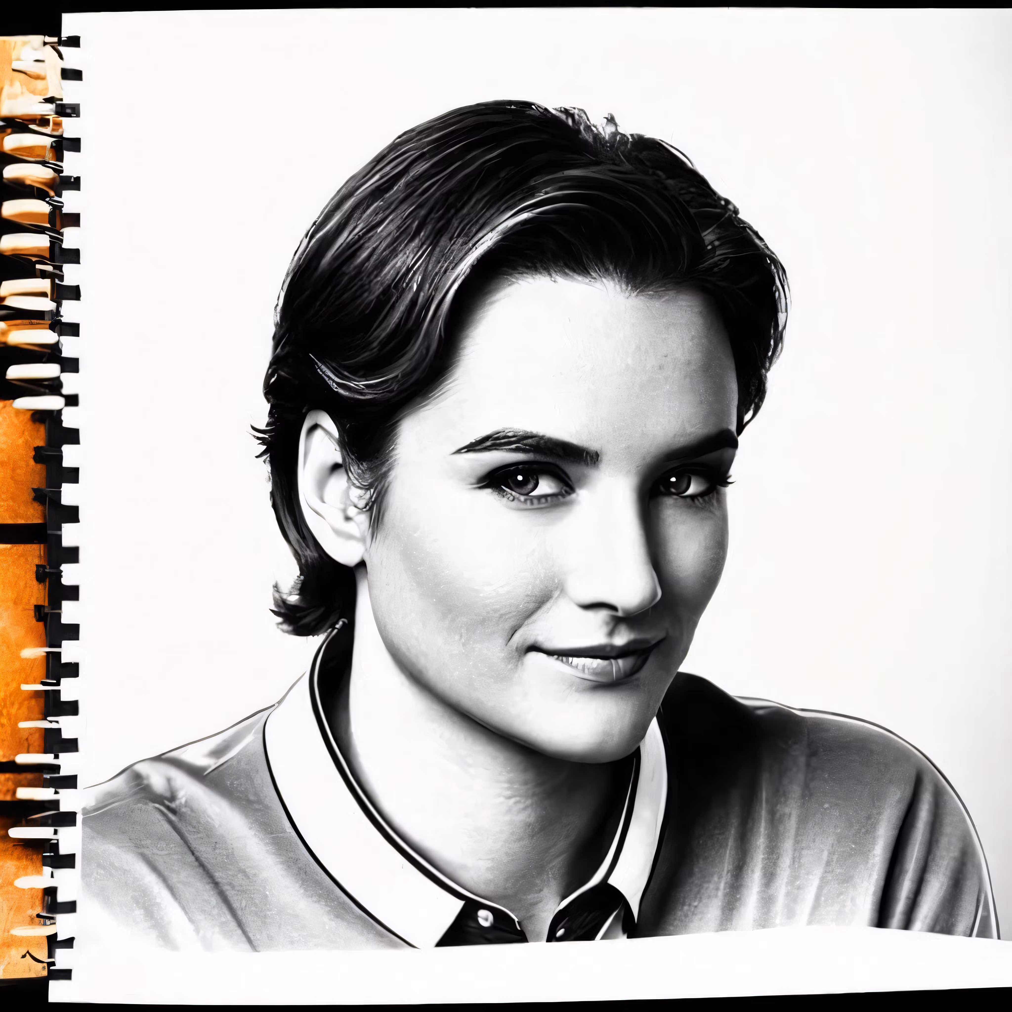 High resolution picture, free to use, a drawing of a woman with a tie and a pencil