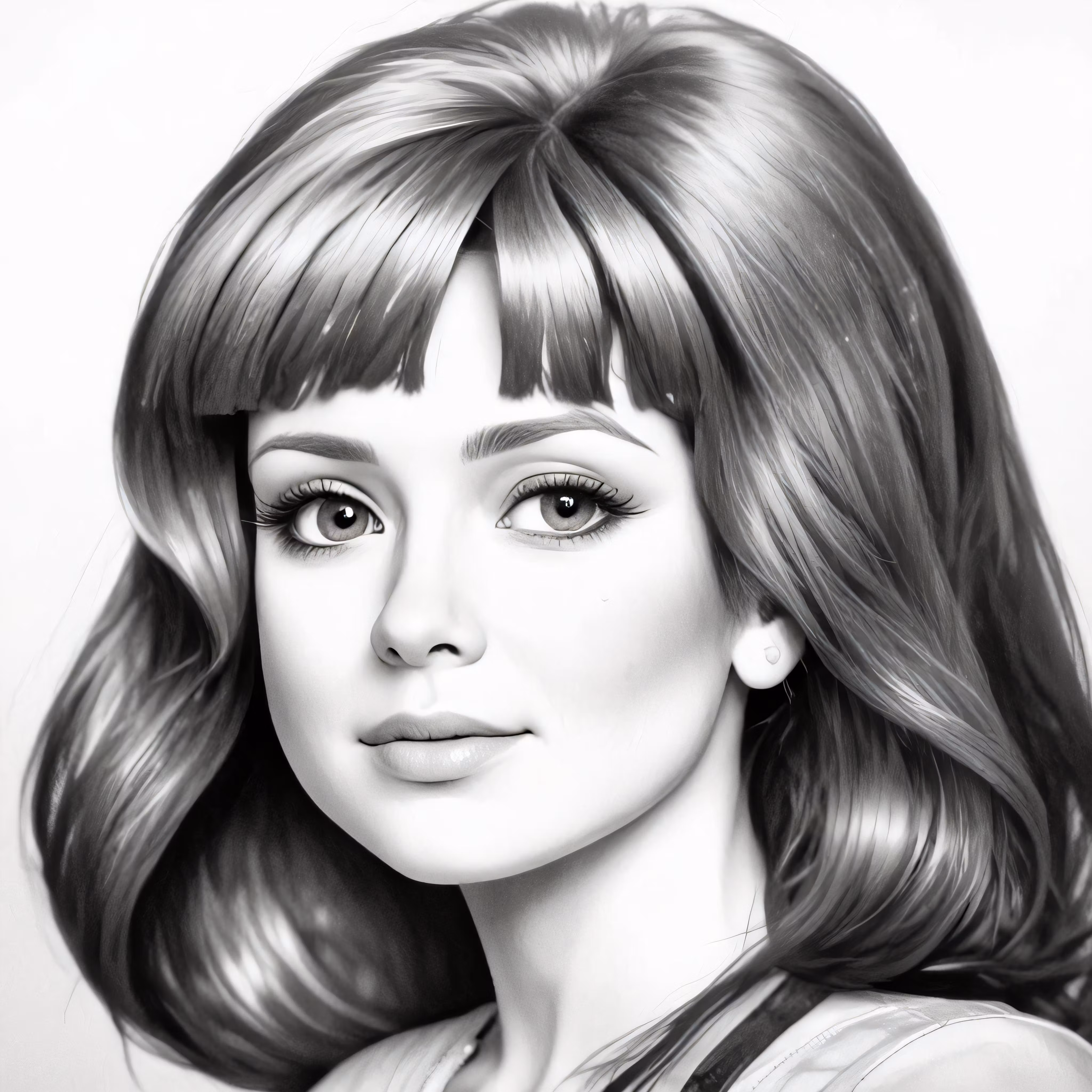 High resolution picture, free to use, a drawing of a woman with long, wavy hair